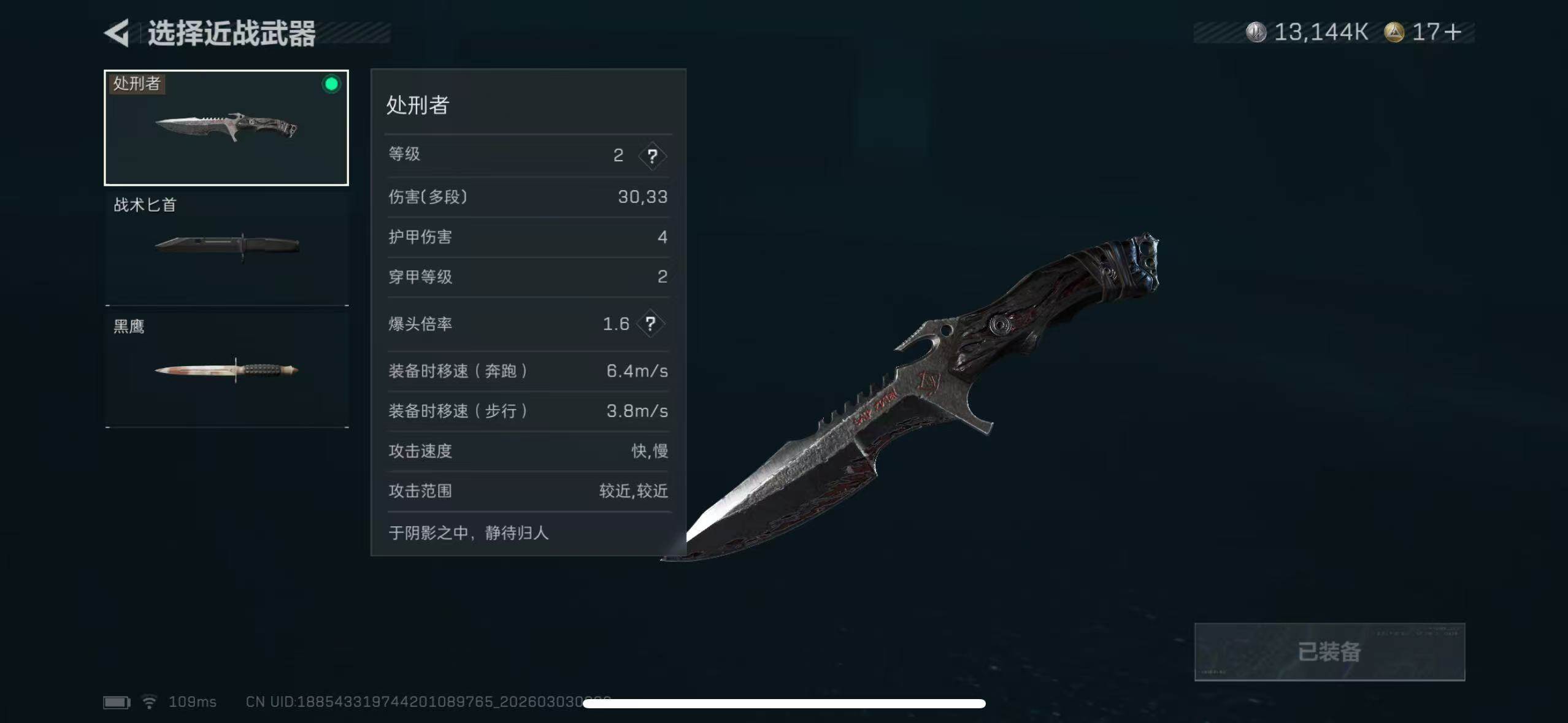 【近战皮肤】:近战-处刑者2级,近战-黑鹰