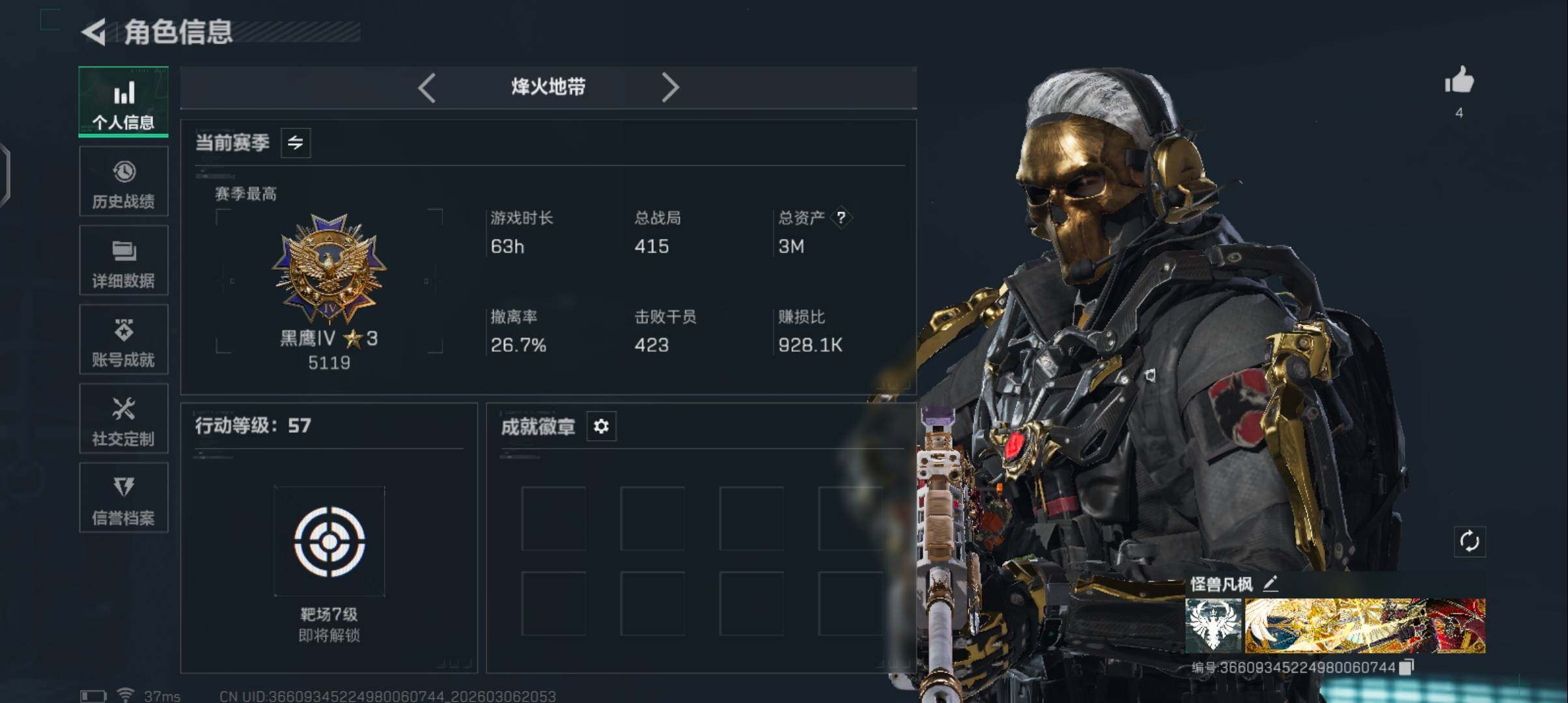 [17384218]【特价出售/店主推荐】3m总资产-24k哈伏币-57烽火等级-黑鹰-22战场等级-军士长