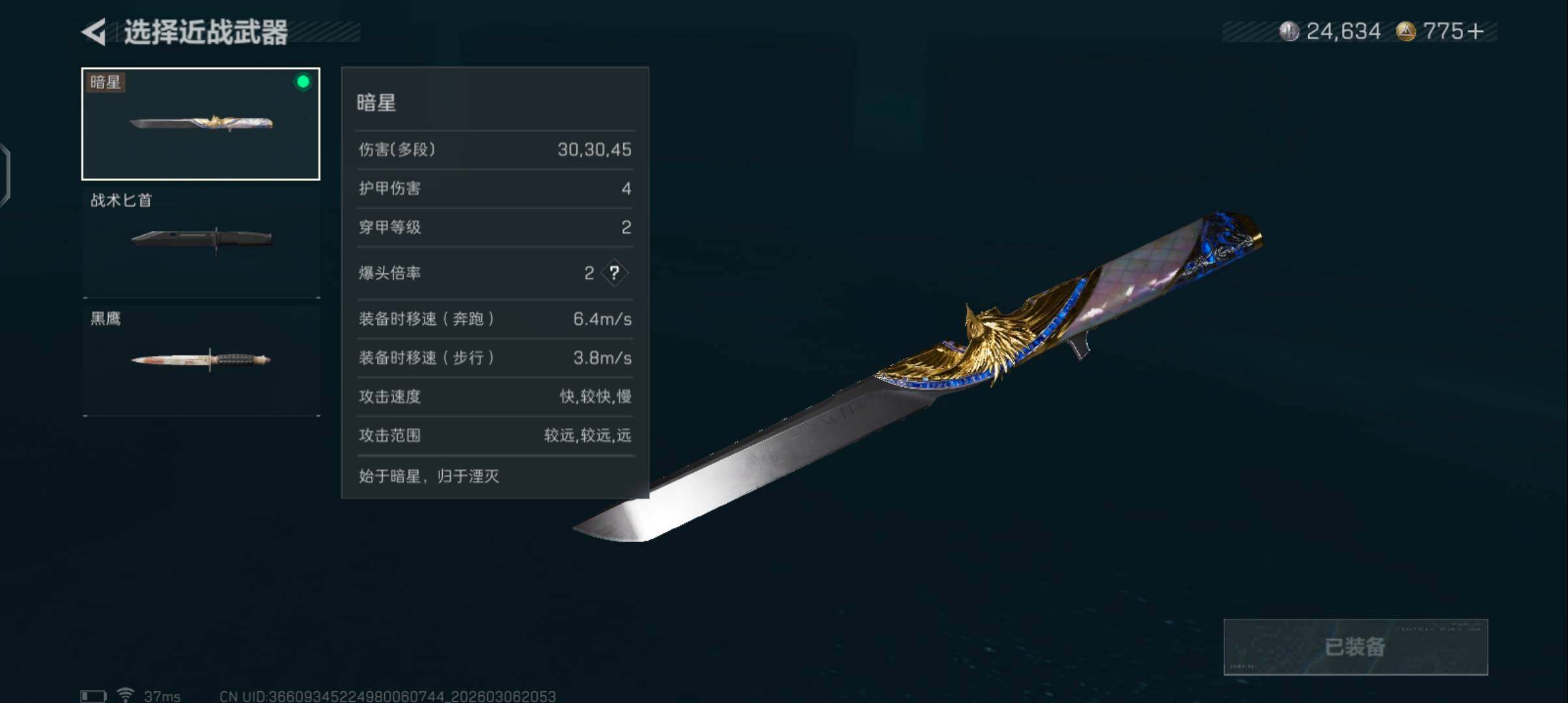 【近战皮肤】:近战-暗星,近战-黑鹰