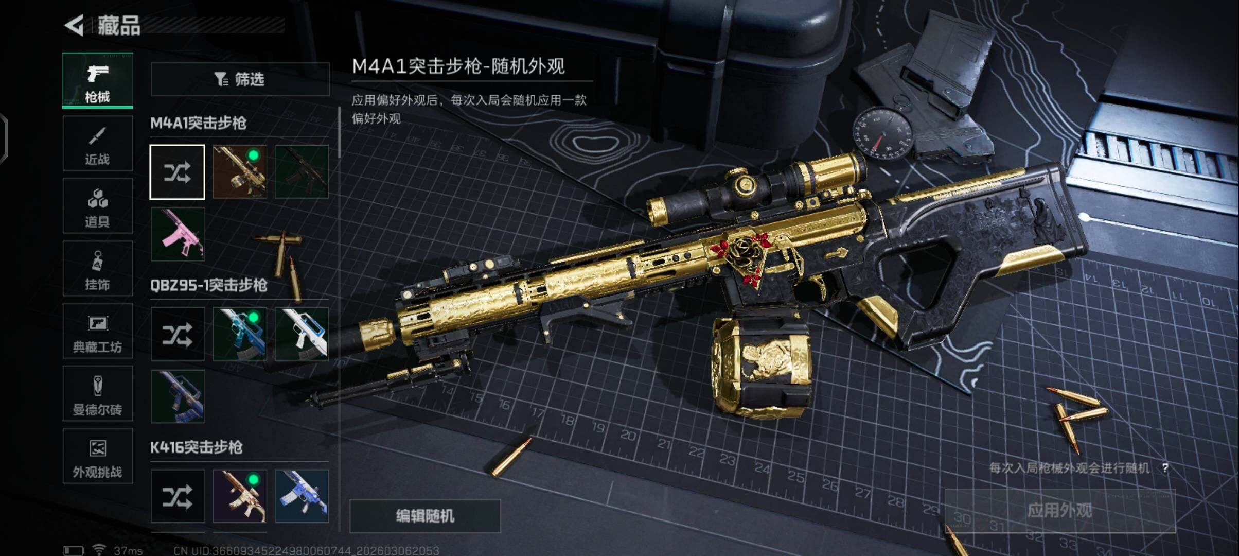 【史诗外观】:K416突击步枪-腊梅,SG552突击步枪-哈夫克警备,K437突击步枪-丛影谍踪,SR-3M紧凑突击步枪-开工大吉,勇士冲锋枪-丛影谍踪,MP7冲锋枪-六套之力,PKM通用机枪-阿萨拉特攻,M249轻机枪-丛影谍踪,QJB201轻机枪-炽焰,VSS射手步枪-丛影谍踪,M700狙击步枪-蝮蛇