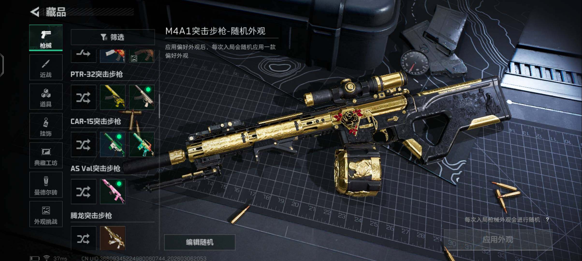 【稀有外观】:SV-98狙击步枪-花岗岩,K416突击步枪-一帆风顺,SG552突击步枪-马年新春,SG552突击步枪-贴花艺术, AK-12突击步枪-马年新春,CAR-15突击步枪-来财,KC17突击步枪-来财,P90冲锋枪-贴花艺术,SMG-45冲锋枪-行动开启,SR-3M紧凑突击步枪-马年新春,勇士冲锋枪-冰天雪地,M249轻机枪-冰天雪地,Mini-14射手步枪-荣耀列队,Mini-14射手步枪-来财,SKS射手步枪-弄臣,SV-98狙击步枪-星链科技,SV-98狙击步枪-哈夫克航天,SV-98狙击步枪-精英联盟