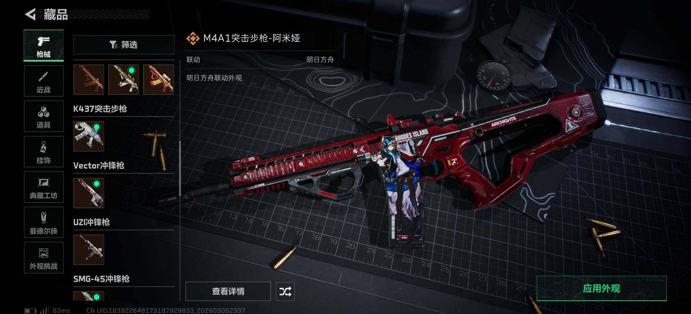 【传说外观】:M4A1突击步枪-阿米娅,AKM突击步枪-锦绣,ASh-12战斗步枪-鹅鸭杀,AK-12突击步枪-特斯拉线圈,SCAR-H战斗步枪-启航,SCAR-H战斗步枪-荼蘼,G3战斗步枪-骑士,CAR-15突击步枪-阿米娅,腾龙突击步枪-捞点薯条,腾龙突击步枪-马年祥瑞,腾龙突击步枪-万金泪冠,K437突击步枪-锦绣,Vector冲锋枪-能天使-午夜邮差,UZI冲锋枪-特斯拉线圈,SMG-45冲锋枪-锦绣,SR-3M紧凑突击步枪-特斯拉线圈,SR-3M紧凑突击步枪-荼蘼,勇士冲锋枪-能天使-午夜邮差,勇士冲锋枪-万金泪冠,QCQ171冲锋枪-鹅鸭杀,PKM通用机枪-荼蘼,QJB201轻机枪-鹅鸭杀,R93狙击步枪-维什戴尔,AWM狙击步枪-捞点薯条,AWM狙击步枪-万金泪冠,G18-马年祥瑞,93R-捞点薯条