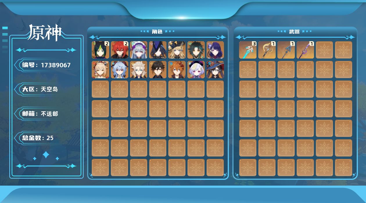 [17389067]57级/25黄/女主/15个五星角色/4个五星武器