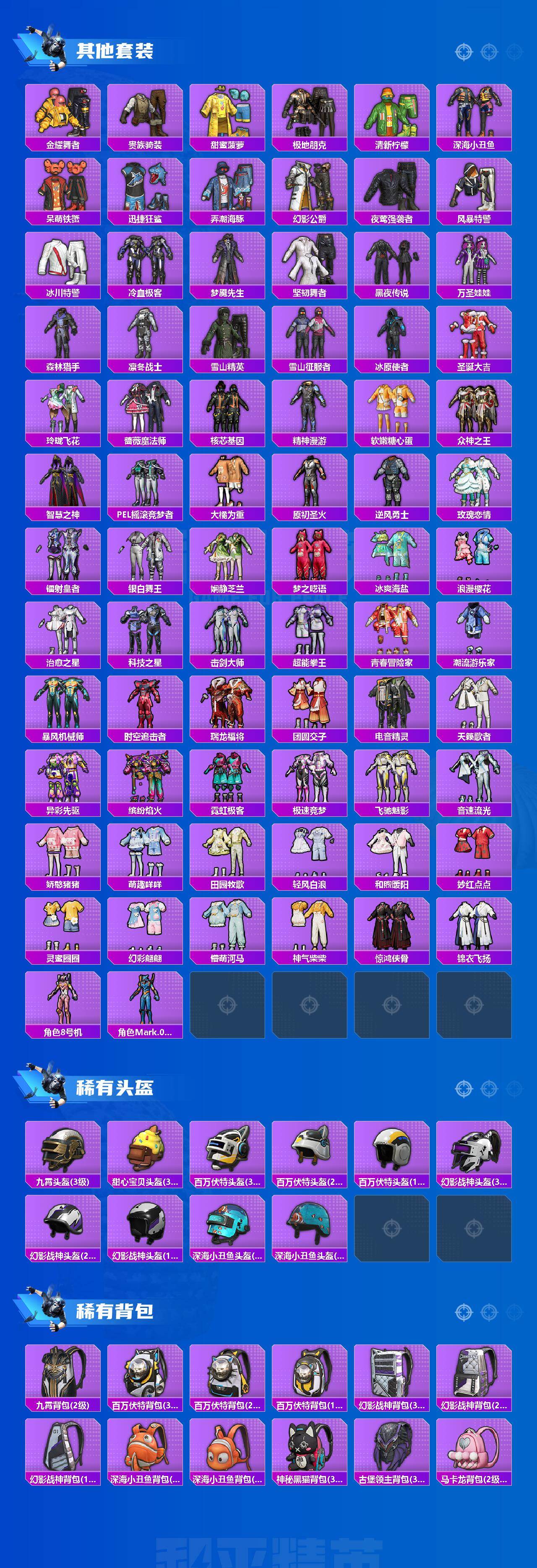 【热门品类】:粉装-梦幻火箭,套装-浪漫天命,套装-都市猎人,套装-深海小丑鱼,套装-小丑鱼,旭日初心兜帽大衣,套装-龟仙人,套装-暗影哥特,套装-粉红小猪,角色-8号机,角色-Mark.06