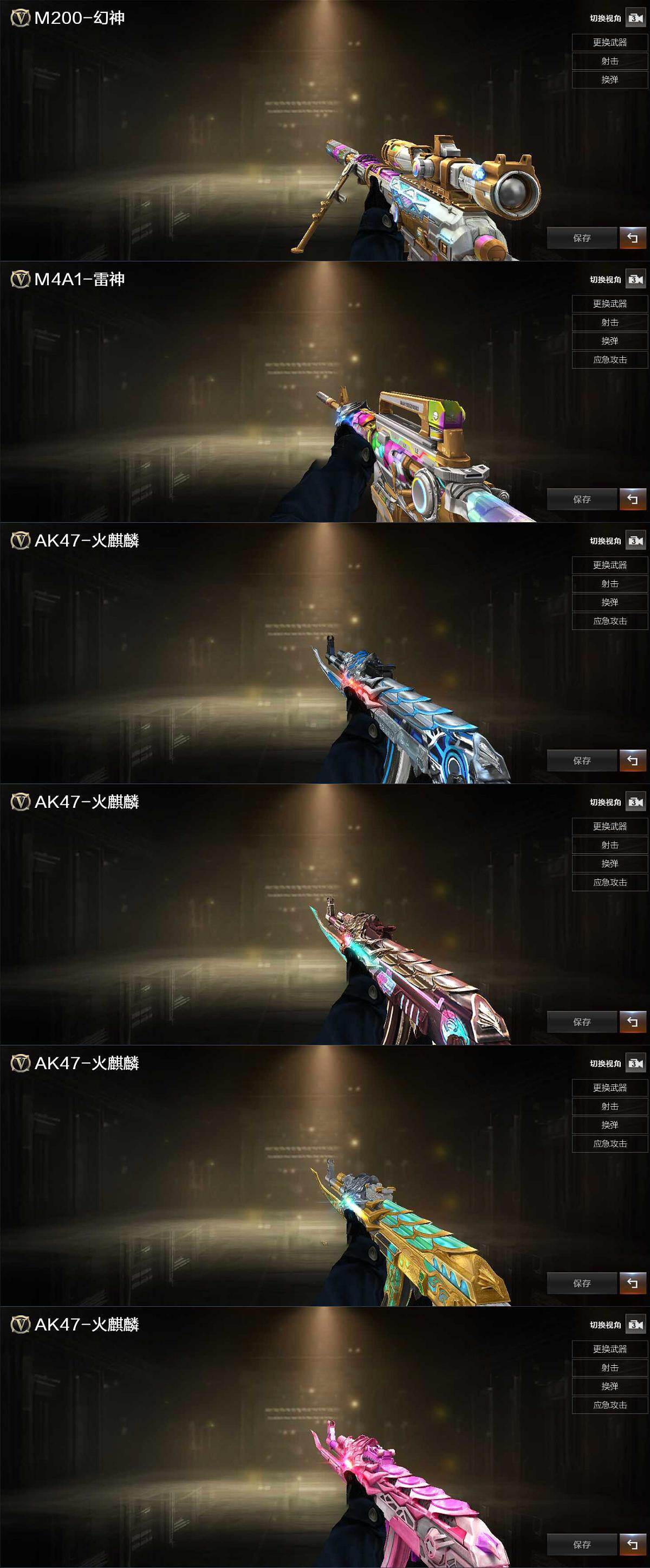 【英雄级武器】:AK47-火麒麟*2,M4A1-雷神,无影-神兵利器,黑武士-锦绣游龙,烈火-动感闪耀,白虎之魄-觉醒版,HK417-朱雀-电竞之星,机械迷城-穹宇,M200-幻神,沙鹰-修罗,天神-动感闪耀,幻灵之锋,屠龙-动感闪耀,高爆手雷-幻灵,手雷-动感闪耀,闪光弹-幻灵,闪光弹-神工天巧,烟雾弹-幻灵,烟雾弹-神工天巧,M4A1-赤狱骑士