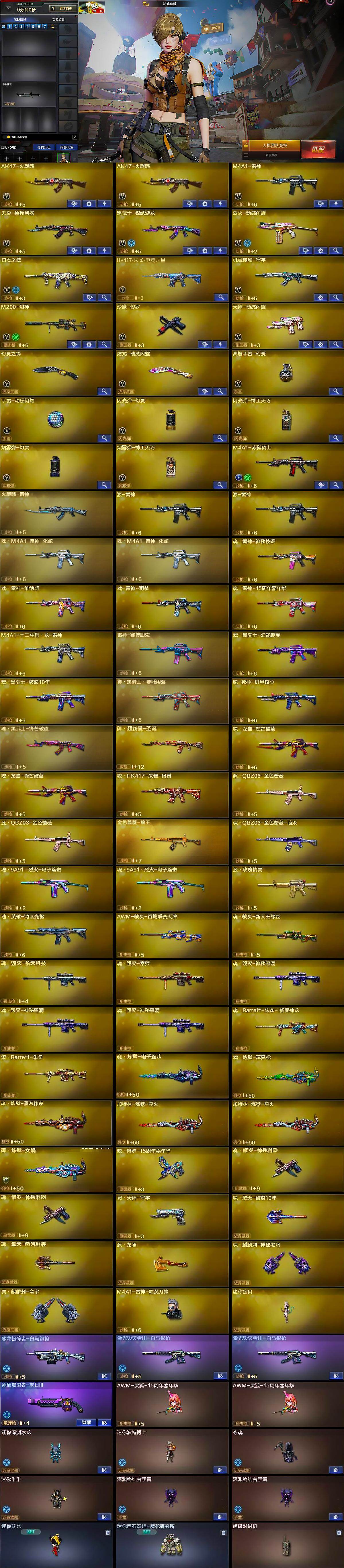 【人偶武器】:M4A1-雷神-精英刀锋,迷你宝贝,AWM-灵狐-15周年嘉年华*2,迷你深渊冰龙,迷你波特博士,夺魂,迷你牛牛,深渊终结者手雷*2,迷你艾比,迷你巨石泰坦-魔花研究所