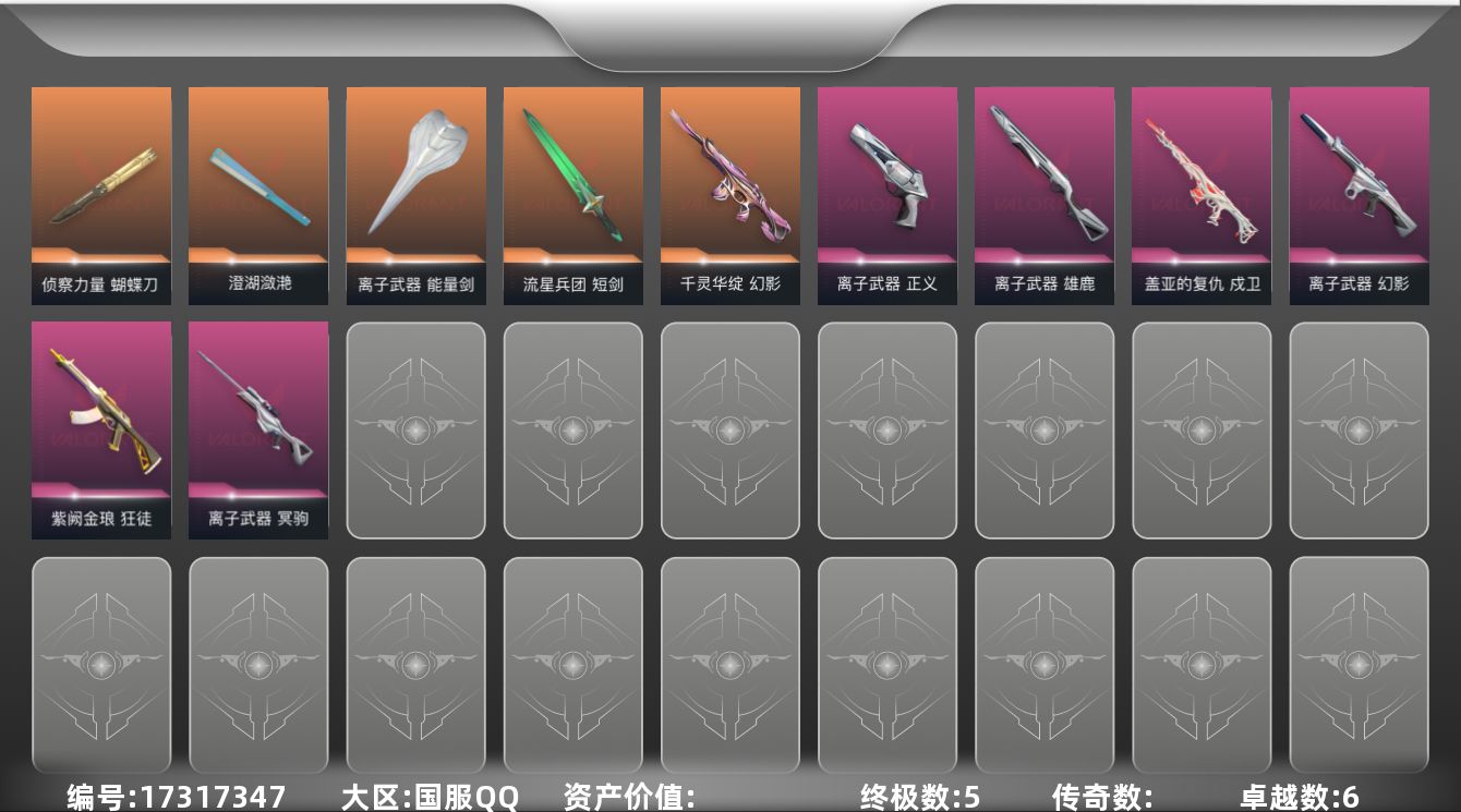 [17317347]【套装】:离子武器套装 【英雄】:幻棱,炼狱,维斯,暮蝶,钛狐,壹决,铁臂,捷风,雷兹,幽影,不死鸟,贤者,猎枭,蝰蛇,零,芮娜,奇乐,尚勃勒,霓虹,斯凯,K/O,盖可,黑梦 【近战武器】:近战武器-侦察力量 蝴蝶刀,近战武器-澄湖潋滟,近战武器-离子武器 能量剑,近战武器-流星兵团 短剑 【狂徒】:狂徒-紫阙金琅,狂徒-流星兵团 【幻影】:幻影-千灵华绽,幻影-离子武器 【戍卫】:戍卫-盖亚的复仇,戍卫-战术熊与伙伴们 【冥驹】:冥驹-离子武器 【飞将】:飞将-战术熊与伙伴们 【莽侠】:莽侠-纤云弄巧 【奥丁】:奥丁-流星兵团 【雄鹿】:雄鹿-离子武器 【骇灵】:骇灵-流星兵团 【蜂刺】:蜂刺-纤云弄巧 【标配】:标配-超能偶像,标配-战术熊与伙伴们 【正义】:正义-离子武器,正义-纤云弄巧 【鬼魅】:鬼魅-流星兵团 【狂怒】:狂怒-战术熊与伙伴们 【短炮】:短炮-纤云弄巧 【卡面】:《双城之战》拥抱 卡面,精灵大战 卡面,欢迎来到底城 卡面,南瓜盛典 卡面,无畏契约:暮蝶 卡面,修车达人 卡面,正义的化身 卡面,终章:生意人麦宝 卡面,铁之华 卡面,时间到 卡面,最高舞台 卡面,声感陷阱设计图 卡面,梦幻奶茶 卡面,终章:打造专属狂徒 卡面,趁热吃 卡面,西装暴徒 卡面,失控边缘 卡面,哨卫者之领域 卡面,暮蝶工牌 卡面,战术熊与伙伴们 卡面,源能反应 卡面,流星兵团 卡面,纤云弄巧 卡面,暂别喧嚣 卡面,打造专属狂徒 卡面,零点嗅探设计图 卡面,无畏契约GO!第一卷:芮娜 卡面,清除名单 卡面,无畏契约GO!第一卷:零 卡面,代号红色 卡面,新兵报到 卡面,V契约 卡面,无畏契约 卡面 【喷漆】:嘭! 喷漆,都算到了 喷漆,控场勿近 喷漆,伤心心 喷漆,熊抱 喷漆,超级粉丝 喷漆,捷风差距 喷漆,惊声尖叫 喷漆,2021冠军巡回赛花火 喷漆,拼一枪 喷漆,加油!加油! 喷漆,开心到爆炸 喷漆,皮蛋萌舞 喷漆,我觉得不行 喷漆,头号粉丝 喷漆,吸一口快乐 喷漆,永远的答案 喷漆,再来一次? 喷漆,别挡我的路! 喷漆,我的刀呢? 喷漆,当然可以 喷漆,流星兵团 喷漆,战术熊与伙伴们 喷漆,禁止喷漆 喷漆,纤云弄巧 喷漆,双击点赞 喷漆,买装还是存钱 喷漆,胜利属于无畏契约 喷漆,GLHF 喷漆,无畏契约 喷漆 【挂饰】:第九季:超凡 挂饰,《双城之战》小蛋糕 挂