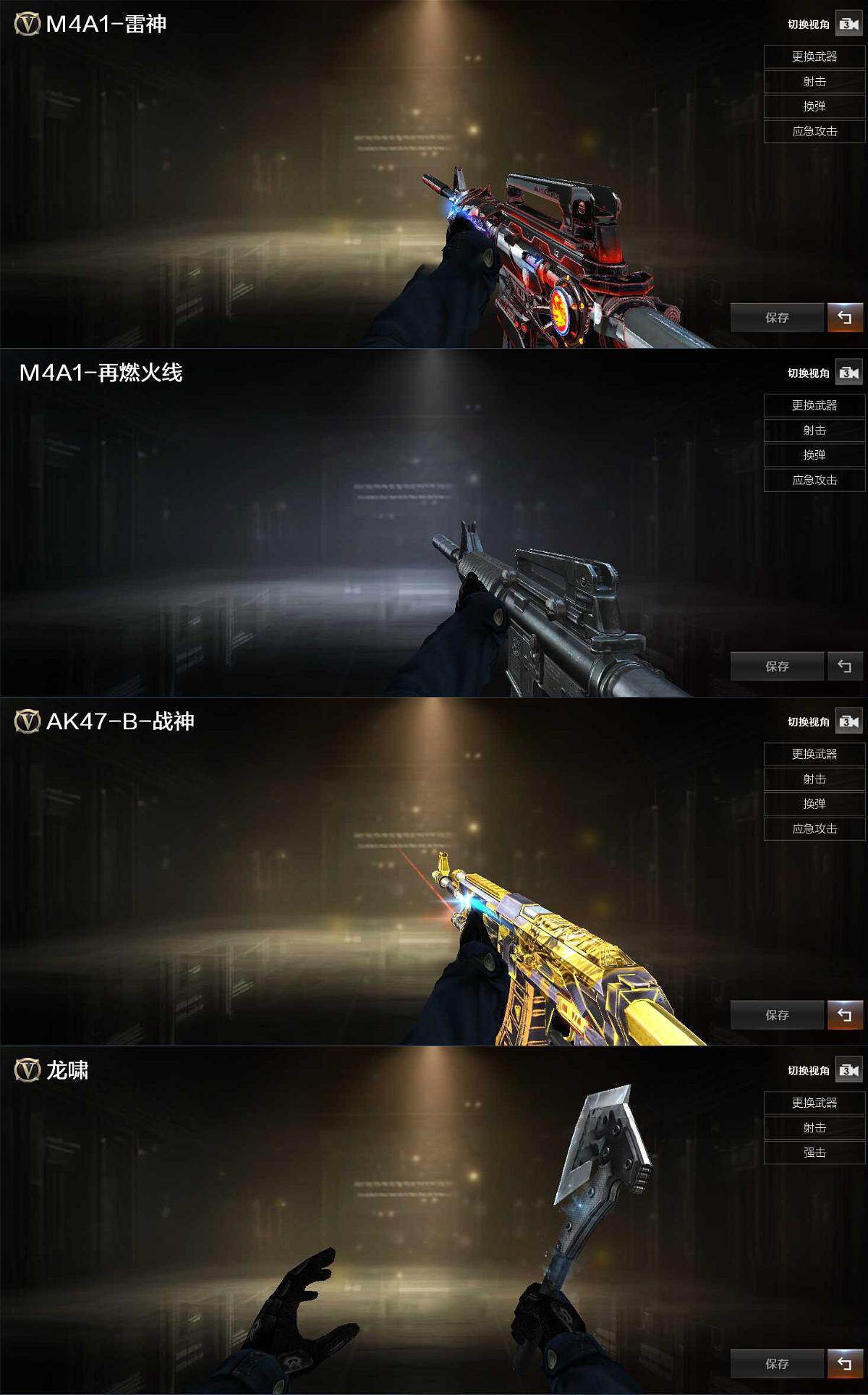 【皮肤】:雷神-暗月,M4A1-再燃火线,战神-流金岁月皮肤,轻型军用手斧-再燃火线