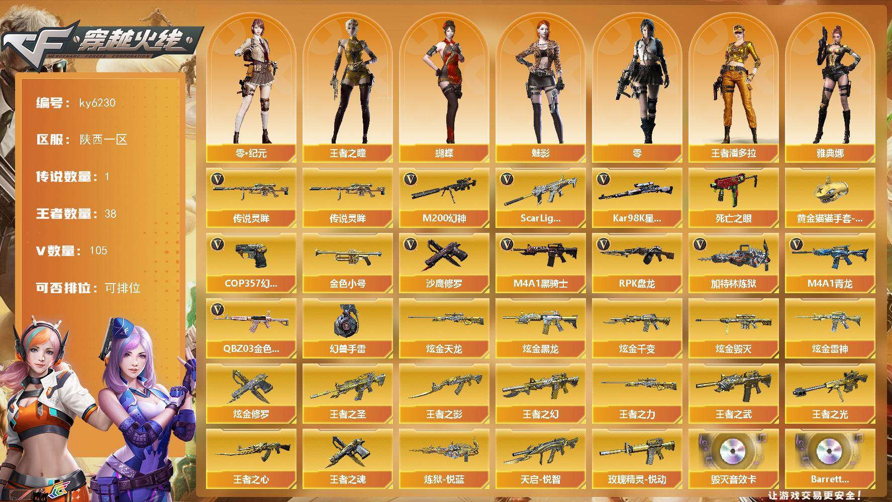 [17404575]【ky6230】陕西一区-113V-38王者武器数-6炫金武器数