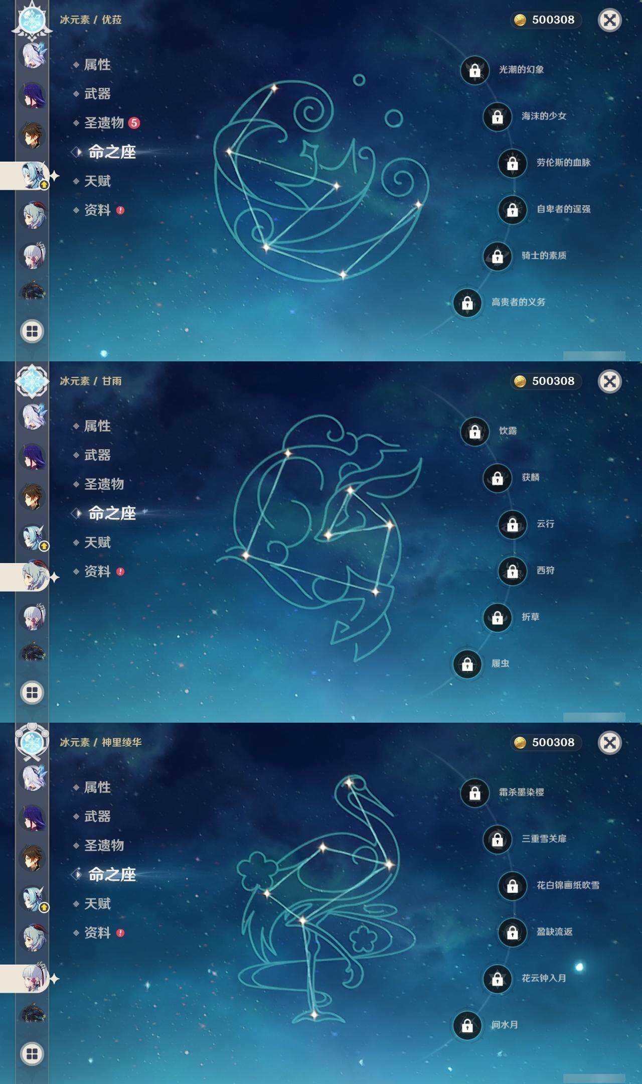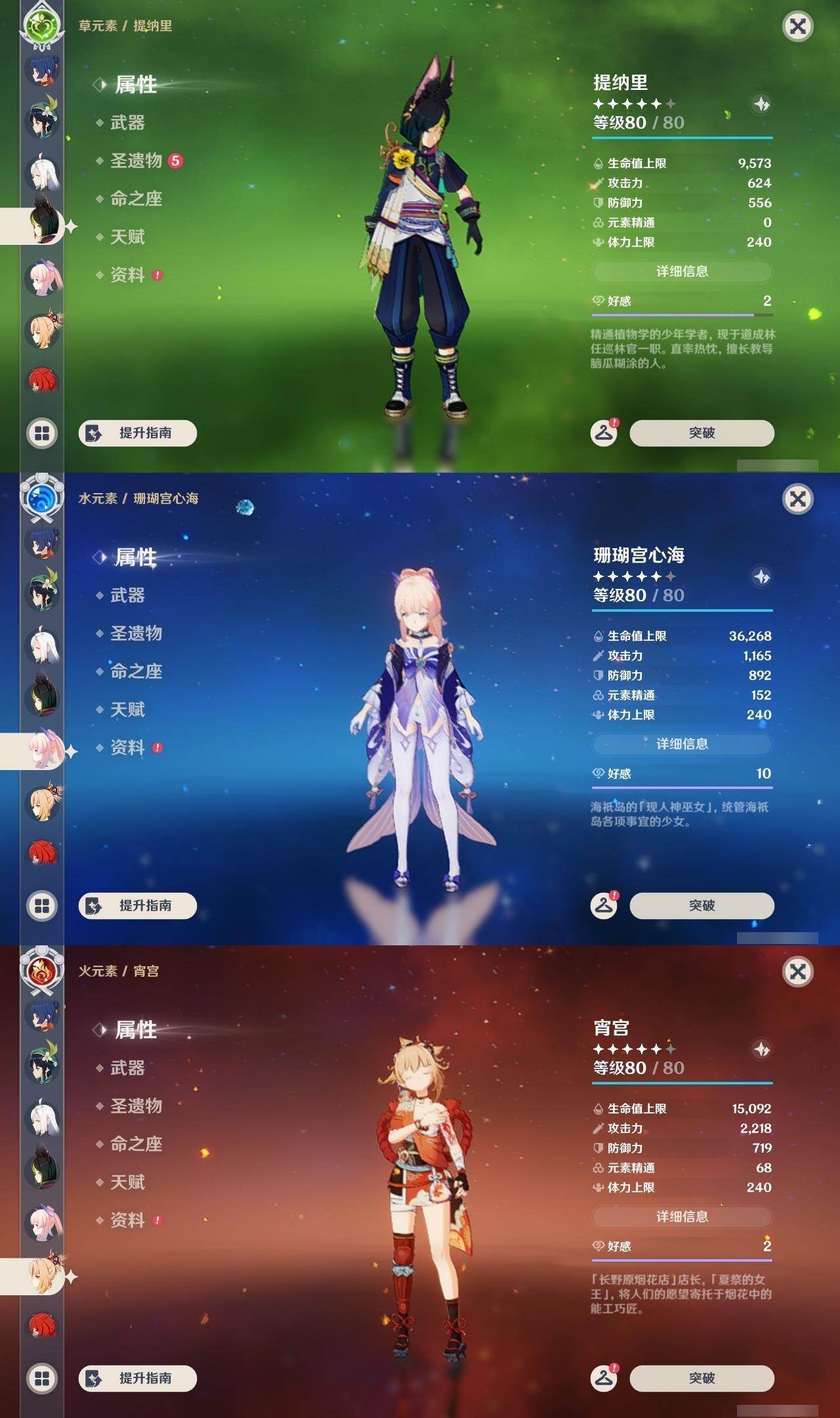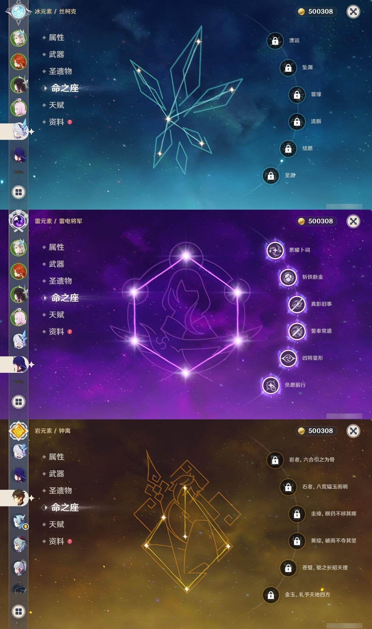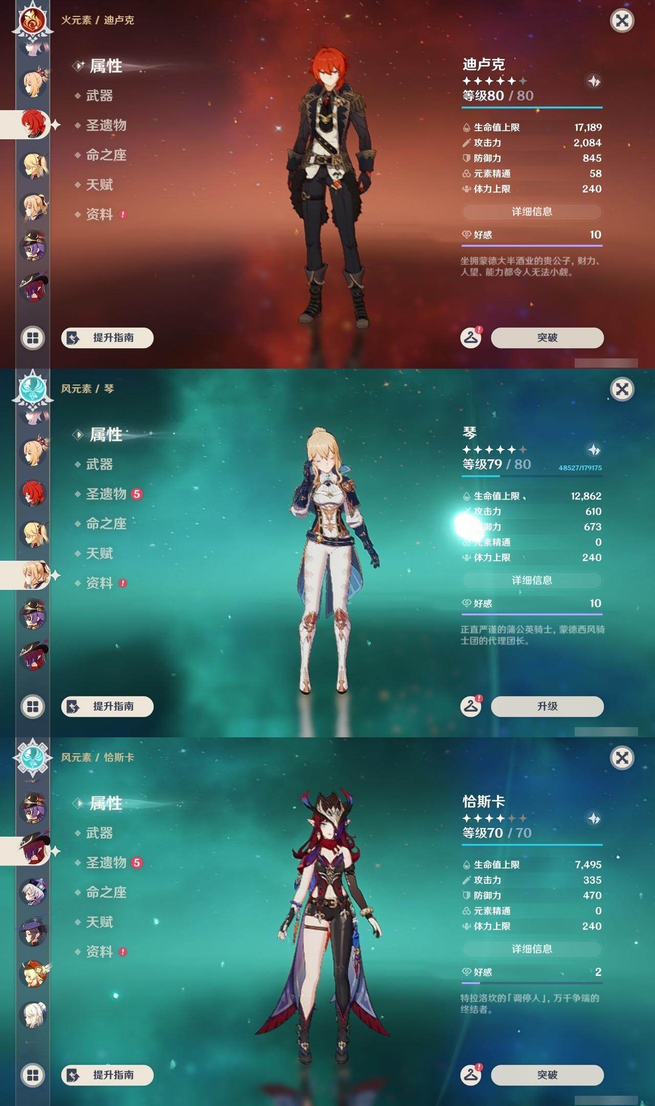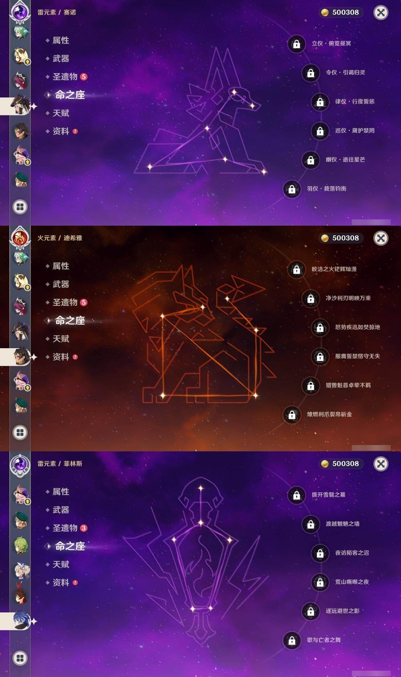 0命那维莱特,0命迪希雅,0命纳西妲,0命赛诺,0命提纳里,1命夜兰,0命申鹤,0命优菈,满命雷电将军,0命神里绫华,0命钟离,1命胡桃,0命甘雨,0命宵宫,0命温迪,0命可莉,0命珊瑚宫心海,2命刻晴,1命七七,1命琴,2命莫娜,满命迪卢克,2命基尼奇,0命恰斯卡,0命玛薇卡,0命丝柯克,0命菲林斯,0命哥伦比娅,精1赤角石溃杵,精1终末嗟叹之诗,精1薙草之稻光,精1雾切之回光,精1护摩之杖,精1和璞鸢,精1天空之翼,精1阿莫斯之弓,精1天空之卷,精1风鹰剑,精1苍耀,精1帷间夜曲