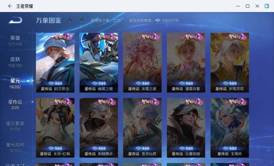 【限定皮肤】:虞姬夏日便利店,姜子牙天穹之誓,杨戬破阵退雄兵,狄仁杰阴阳师,赵云皇家上将,项羽海滩派对,李元芳云中旅人,干将莫邪画中仙,雅典娜黎明之约,裴擒虎擒涛扼浪,鲁班大师探海日志,桑启海盐诗旅,艾琳女武神,蒙恬荣光圣徽,刘邦剑破天穹,程咬金群星魔术团,刘备异域游侠,周瑜熔金海岸
