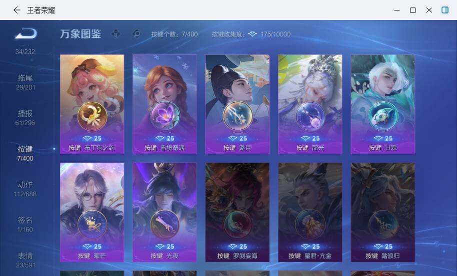 明世隐疑决卦,老夫子醍醐杖,鬼谷子原初探秘者,狄仁杰万华元夜,程咬金演武夺筹,钟馗驱傩正仪,苏烈千军破阵,鲁班七号狮舞东方,马可波罗暗影游猎,蒙犽狂想玩偶喵,元歌云间偶戏,弈星混沌棋,达摩沙漠行僧,兰陵王金庭之子,沈梦溪大漠名商,李元芳云中旅人,桑启海盐诗旅,裴擒虎擒涛扼浪,鲁班大师探海日志,张良古海寻踪,项羽苍威无极,镜青焰无极