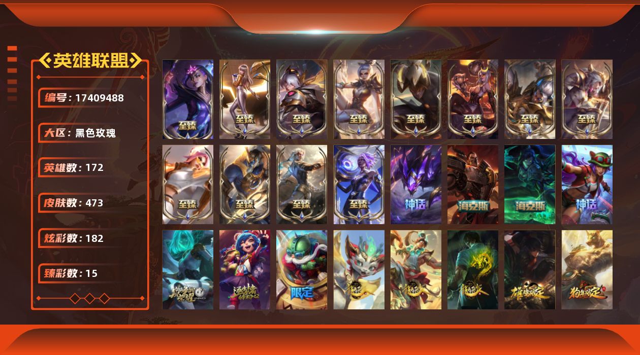 [17409488]【店主推荐捡漏号】未定级段位-172英雄-473皮肤-182炫彩-0终极-19神话-76限定-59传说-99史诗