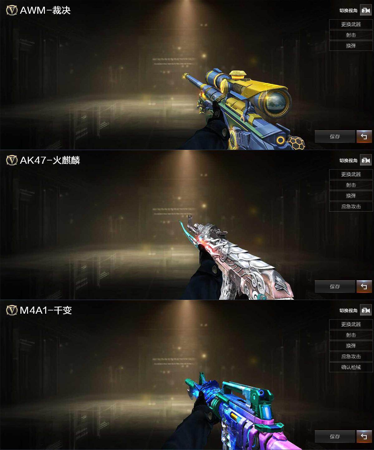 【英雄级武器】:M4A1-千变,AK47-火麒麟,M4A1-黑骑士,AK47-黑武士,无影-神兵利器,白虎之魄-觉醒版,机械迷城-穹宇,Barrett-极光,AWM-裁决,M200-幻神,沙鹰-修罗,屠龙,幻灵之锋,高爆手雷-幻灵*2,闪光弹-幻灵*2,烟雾弹-幻灵*2,Barrett-碧霄极光