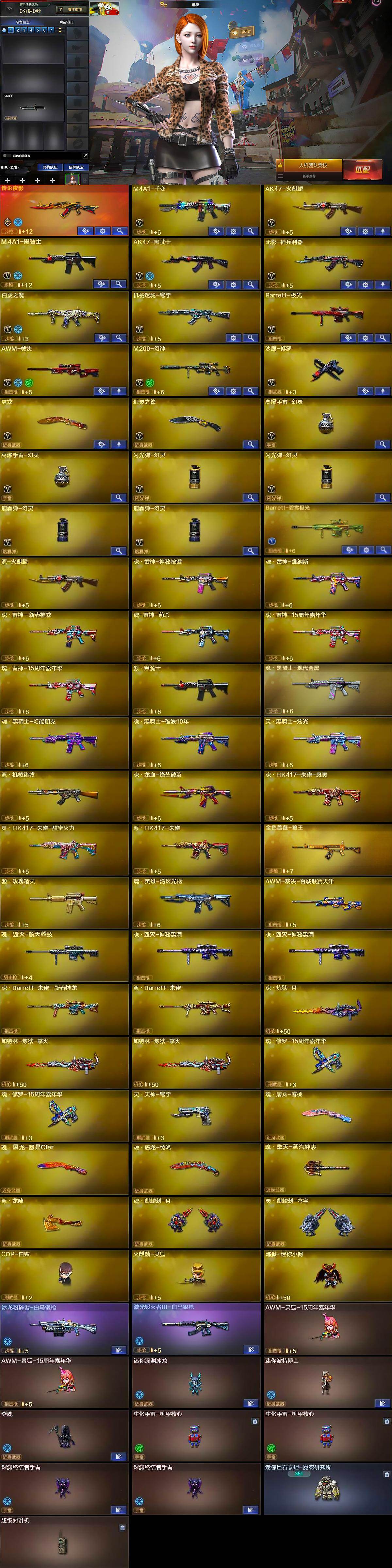 - [14666658]南方大区-38V-3王者-0炫金 【热门武器】:QBZ03-金色蔷薇,M14EBR-玄武,M200-幻神,金色蔷薇-古蛇迷踪,修罗-古蛇迷踪,白虎-电玩蓝兔,Kar98K-星神,金色小号,COP 357-幻灵 【音效卡】:M200-幻神音效卡,炼狱-百战金芒-庆典舞曲音效卡 【皮肤】:幻神-Heartshot 皮肤,幻神-电竞之星 皮肤,金色蔷薇-Heartshot皮肤,雷神-暗月,雷神-宇航兔皮肤,M4A1-再燃火线,雷神-神秘按键 皮肤,火麒麟-白虎,轻型军用手斧-再燃火线 【角色】:电竞教官-云悠悠,战地猎狐,王者樱-热浪之夏,蛇隐宗,奇洋探员,云海玲珑,暗夜-X,电竞少女,芳心审判者,飞虎队-X,0号玩家,灵狐者-X,灵狐者-黄金海岸,麻雀,曼陀罗-礼服,娜塔莉娅,潘多拉-X,潘多拉-甜心教官,潜龙队-X,蛇姬,铁骑荣耀,维纳斯,新娜塔莎,雪莉杨-摸金校尉,夜玫瑰-宠粉,樱-战斗天使,游珑儿 【人偶武器】:AWM-灵狐-15周年嘉年华,夺魂,迷你牛牛*2,生化手雷-机甲核心,迷你艾比,灵狐娃娃手雷 【暴走生化】:超级对讲机 【挑战大师】:激光毁灭者III-白马银枪,试炼破坏者III,神圣爆裂者-末日III 【英雄级武器】:AK47-火麒麟,M4A1-雷神,M14EBR-玄武,无影-神兵利器,黑武士-锦绣游龙,超新星-热带奇洋,金色蔷薇-古蛇迷踪,QBZ03-金色蔷薇,白虎-电玩蓝兔,M200-幻神,Kar98K-星神,王者风神-觉醒版,炼狱-百战金芒,炼狱-悦蓝-觉醒版,AA-12-雷霆,沙鹰-天神,COP 357-幻灵,修罗-古蛇迷踪,幻灵之锋*2,龙啸-热带奇洋,麒麟刺-百战金芒,高爆手雷-幻灵*3,手雷-云海游龙,手雷-热带奇洋,高爆手雷-古蛇迷踪,闪光弹-幻灵*3,闪光弹-云龙*3,烟雾弹-幻灵*3,烟雾弹-古蛇迷踪,M4A1-赤狱骑士,AWM-昌龙 【道具】:CFS限定背包,云山科技背包,亚洲杯纪念炫彩背包,古蛇迷踪炫彩背包,奇洋探员-海龟背包,女皇终结者-背包,热带奇洋炫彩背包,百战金芒炫彩背包,背包-洛丽塔,超级背包,女皇终结者-魔龙之吻,救世主-黑桃战神,黄金生化钩,绿色巨人,灵魂忍者*2,变异宝贝,迷雾幽灵*3,生化弹匣,夺命之镰,防化服*3,金色流光-枪王排位,星辰流光-枪王排位,流光-鎏金之域,流光-再燃火线,枪王排位28赛季金色流光