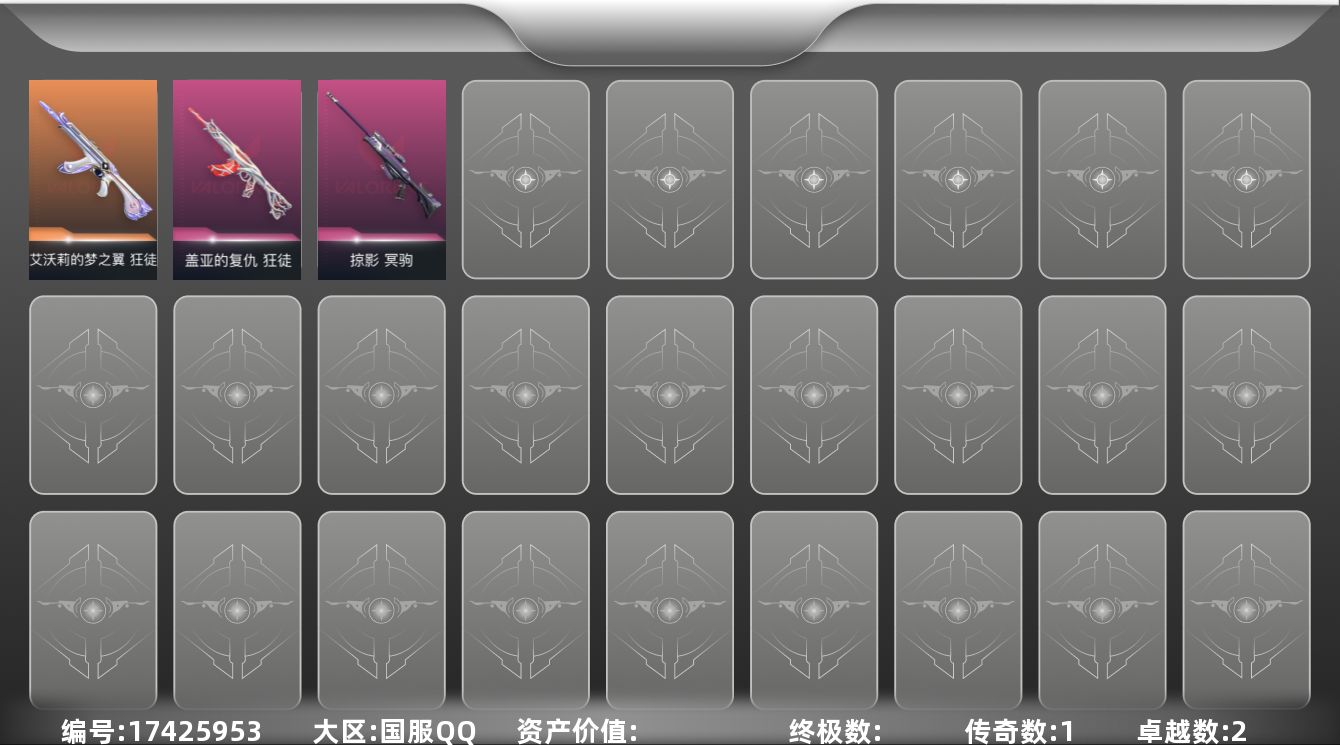 [17425953]【英雄】:幻棱,炼狱,暮蝶,壹决,捷风,不死鸟,贤者,猎枭,芮娜,尚勃勒,黑梦 【狂徒】:狂徒-艾沃莉的梦之翼,狂徒-盖亚的复仇 【冥驹】:冥驹-掠影 【卡面】:无畏契约GO!第一卷:零 卡面,代号红色 卡面,新兵报到 卡面,V契约 卡面,无畏契约 卡面 【喷漆】:买装还是存钱 喷漆,胜利属于无畏契约 喷漆,GLHF 喷漆,无畏契约 喷漆 【挂饰】:天外飞客 挂饰,无畏契约 纪念币 挂饰