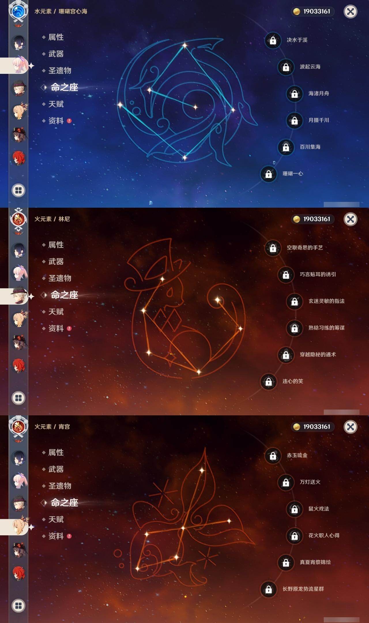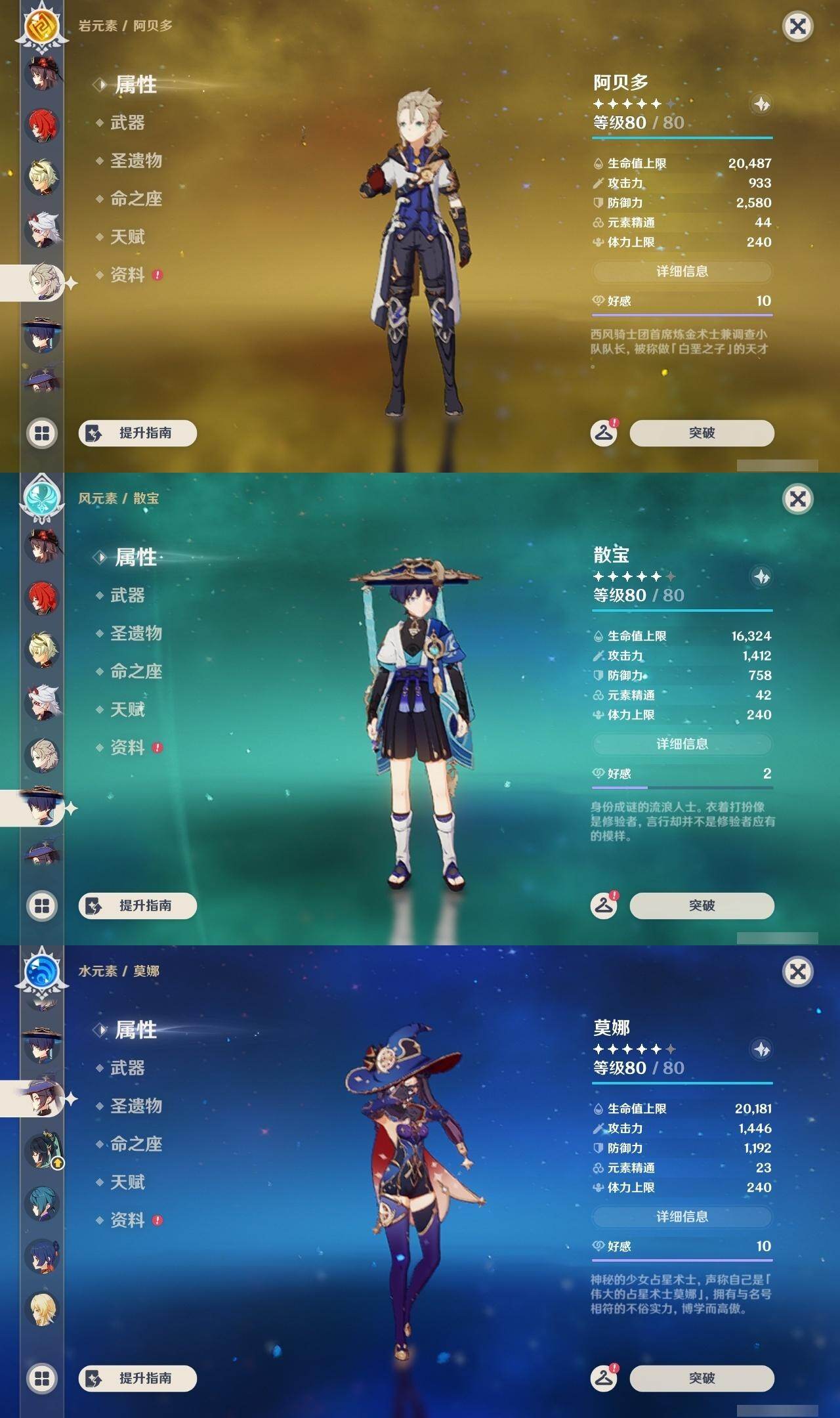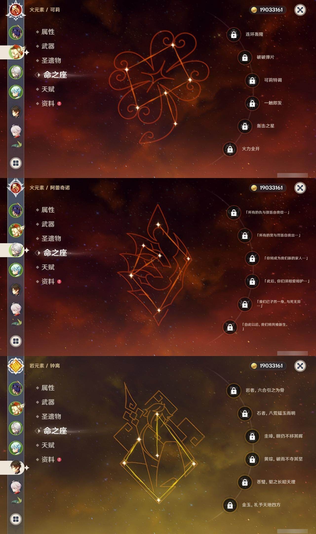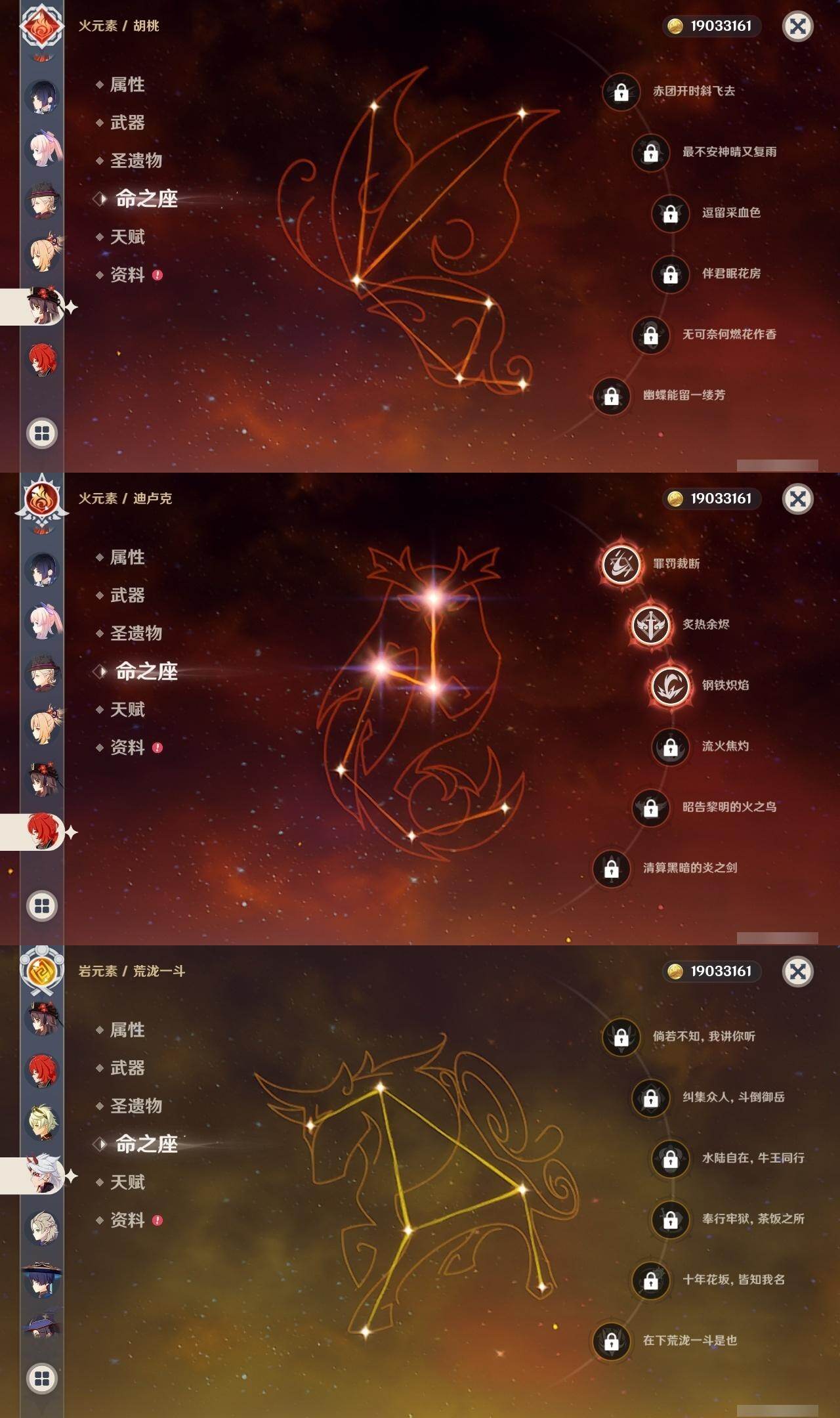 0命阿蕾奇诺,1命闲云,0命那维莱特,0命林尼,0命流浪者,0命纳西妲,0命妮露,0命提纳里,0命夜兰,0命申鹤,0命荒泷一斗,0命雷电将军,0命枫原万叶,1命神里绫华,0命钟离,0命胡桃,1命甘雨,0命宵宫,0命温迪,0命可莉,0命阿贝多,0命珊瑚宫心海,0命刻晴,0命七七,1命琴,4命莫娜,3命迪卢克,精1赤月之形,精1圣显之钥,精1若水,精1不灭月华,精1飞雷之弦振,精1磐岩结绿,精1四风原典,精1和璞鸢,精1天空之翼,精1阿莫斯之弓
