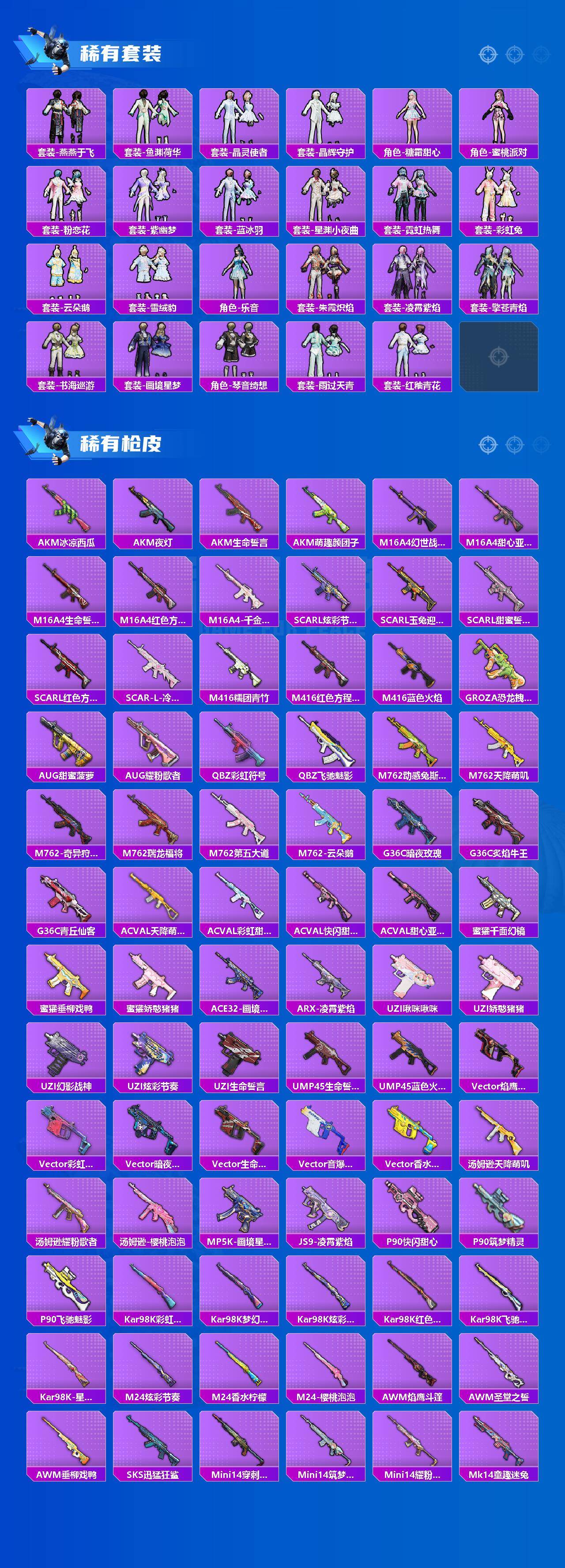 [17432913]苹果 手Q-15粉装-12特效枪-1载具-6粉色飞行器-85579热力值-11王牌印记-200套装-244枪皮 【热门品类】:粉装-雪国幻梦,粉装-缤纷油彩,套装-浪漫天命,套装-派对舞王,套装-奇异狩猎者,套装-粉红小猪,套装-糯粉咩咩,套装-红熊茄茄 【粉色套装】:粉装-雪国幻梦,粉装-缤纷油彩,粉装-草莓生巧,粉装-馨动时刻,粉装-甜梦小狐,粉装-旋转彩虹,粉装-第五大道,粉装-憨憨奶龙,粉装-蜜语绒猫,角色-严莉莉,角色-美雪,角色-樱桃泡泡,粉装-雪月幻音,角色-奇迹舞步 美雪,角色-羊梦糖心 【粉色枪皮等级】:AKM-暮色玫影(三级),M16A4-垂柳戏鸭(五级),UZI-筑梦精灵(七级),Kar98K-巳巳如意(五级),M24-莲影清波(六级),Mk14-樱桃泡泡(七级),Mk14-福马献瑞(三级),M417-第五大道(一级),AA12-G-萌骑幻想(一级),SPAS-12-蜜语绒猫(四级),DP-28-豹影疾电(五级),烟雾弹-好运连连(五级) 【粉色载具】:暮色幽蹄 【粉色枪皮】:AKM-暮色玫影,M16A4-垂柳戏鸭,UZI-筑梦精灵,Kar98K-巳巳如意,M24-莲影清波,Mk14-樱桃泡泡,Mk14-福马献瑞,M417-第五大道,AA12-G-萌骑幻想,SPAS-12-蜜语绒猫,DP-28-豹影疾电,烟雾弹-好运连连 【粉色飞行器】:香车宝马飞行器,炫彩糖果飞行器,沙丘之主天马,幻海精灵飞行器,曦光华影飞行器,时光之吻飞行器 【粉色降落伞】:甜心宝贝降落伞,古堡领主降落伞,伏魔团降落伞,香水柠檬降落伞,暗夜玫瑰降落伞,碧影闪光降落伞,橘柚倾心降落伞,甜梦小狐降落伞,环太平洋降落伞,垂柳戏鸭降落伞,彩虹甜喵降落伞,第五大道降落伞,仲夏莫吉托降落伞,萌物绒绒降落伞,圣堂之誓降落伞,夜幕颂歌降落伞,蜜语绒猫降落伞,绝色倾城降落伞,精灵之光降落伞,千金淑猫降落伞,晶梦幻蝶降落伞,彩虹独角兽降落伞,月下星之子降落伞,樱桃泡泡降落伞,智耀战神降落伞,时光之誓降落伞,炫彩糖果降落伞 【稀有套装】:套装-超能元气,套装-雪国风尚,套装-炫彩糖果,套装-糖糖葫芦,套装-青团波波,套装-棉花软糖,角色-都市丽猫,角色-摩登魅猫,套装-燕燕于飞,套装-鱼渊荷华,套装-晶灵使者,套装-晶辉守护,角色-糖霜甜心,角色-蜜桃派对,套装-粉恋花,套装-紫幽梦,套装-蓝