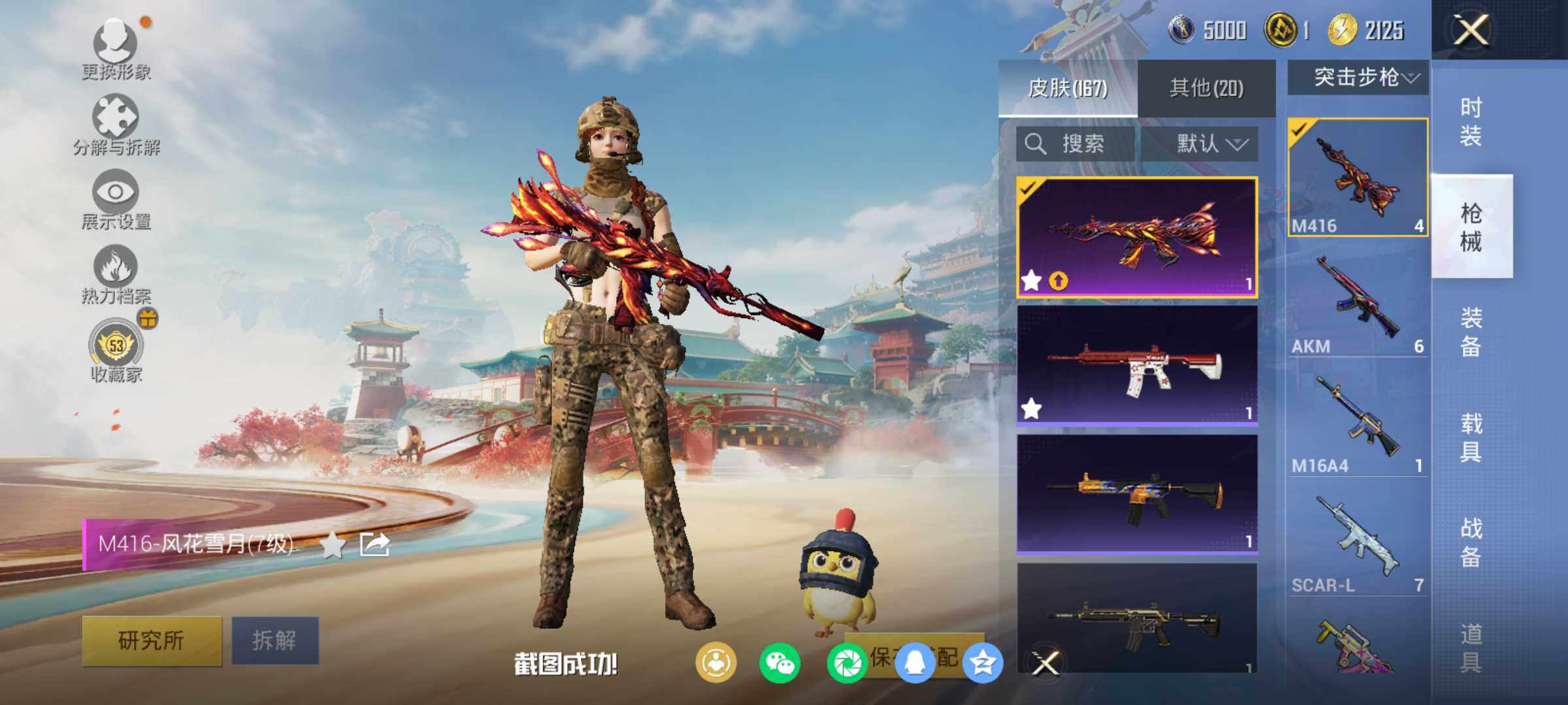 【粉色枪皮等级】:M416-风花雪月(七级),AUG-星之彼岸(三级),AKS-74U-星穹咏叹调(六级),Kar98K-巳巳如意(五级)