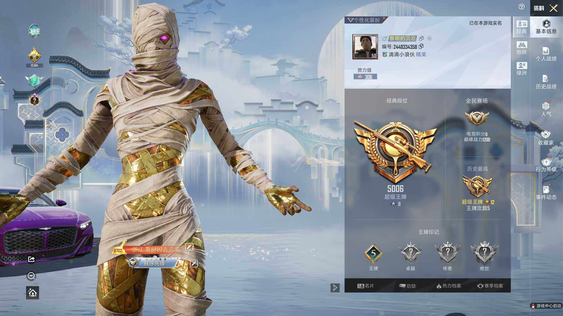 - PX_2095022-实名: 可修改 时装数: 644 枪械数: 237 战备数: 165 热门装扮: 奇异狩猎者,古堡领主,浪漫波比,梦魇先生,王牌四分卫,潮萌小黄鸭,罗小黑,胖达团团,软萌银虎,暗夜魅影,烟云彩露 稀有枪皮: M416心之恋语,AKM绿萝繁花,SCAR-L-锦绣绵绵,Kar98K-巳巳如意,AUG-暖羊咩咩,MK14-甜梦熊击
