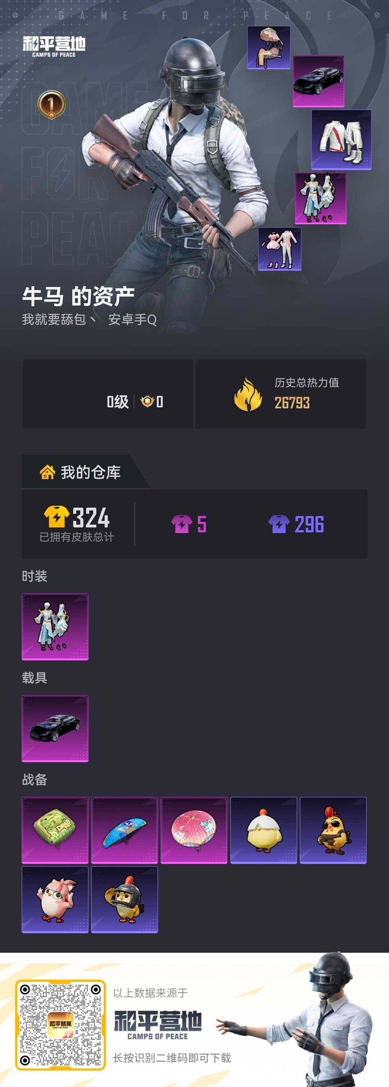 [17434583]可二次【特价出售/店主推荐】安卓 手Q-1粉装-0特效枪-1载具-0粉色飞行器-26793热力值-1王牌印记-75套装-106枪皮