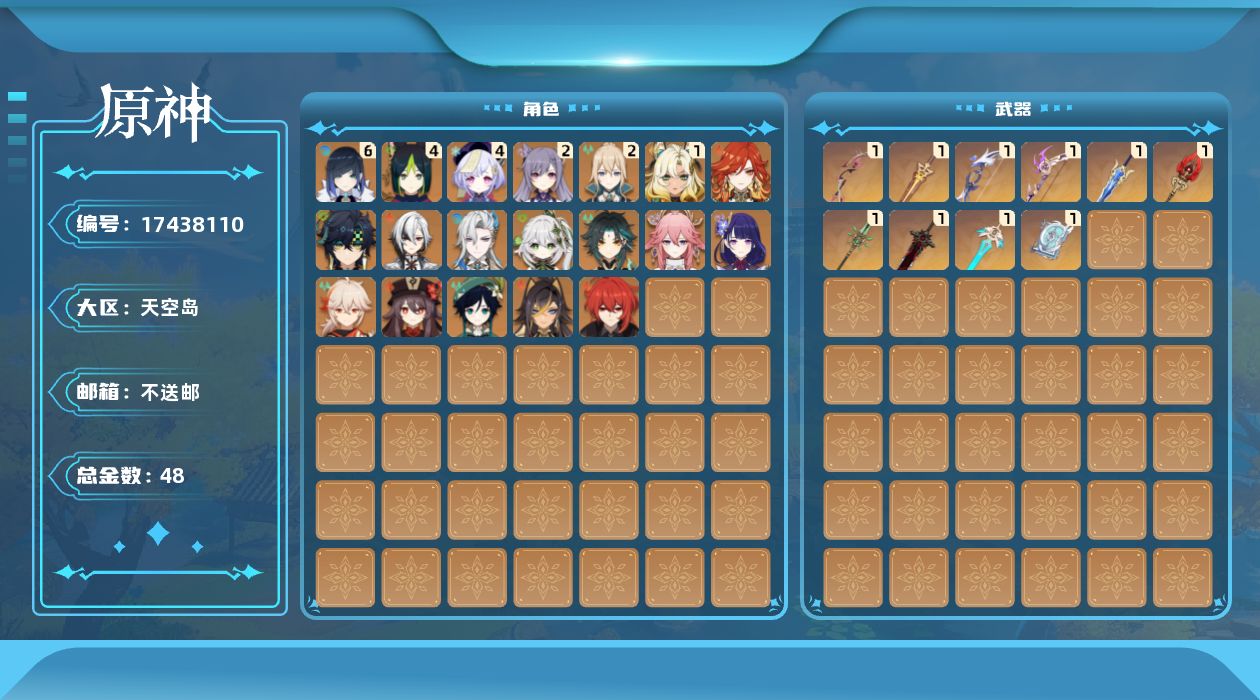 [17438110]【店主推荐捡漏号】60级/48黄/女主/19个五星角色/10个五星武器