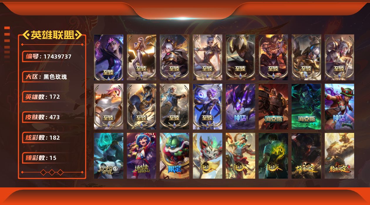 [17439737]【店主推荐捡漏号】未定级段位-172英雄-473皮肤-182炫彩-0终极-19神话-76限定-59传说-99史诗