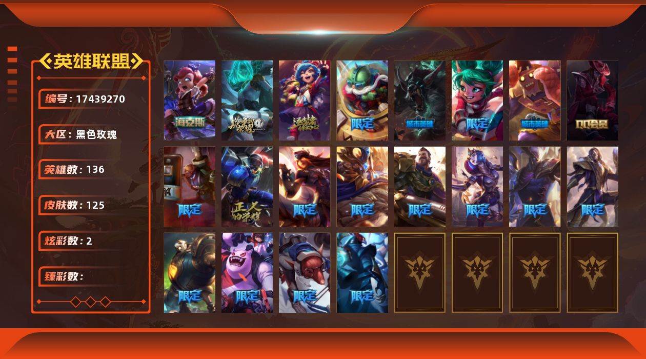 [17439270]可二次【特价出售/店主推荐】未定级段位-136英雄-125皮肤-2炫彩-0终极-4神话-21限定-11传说-23史诗