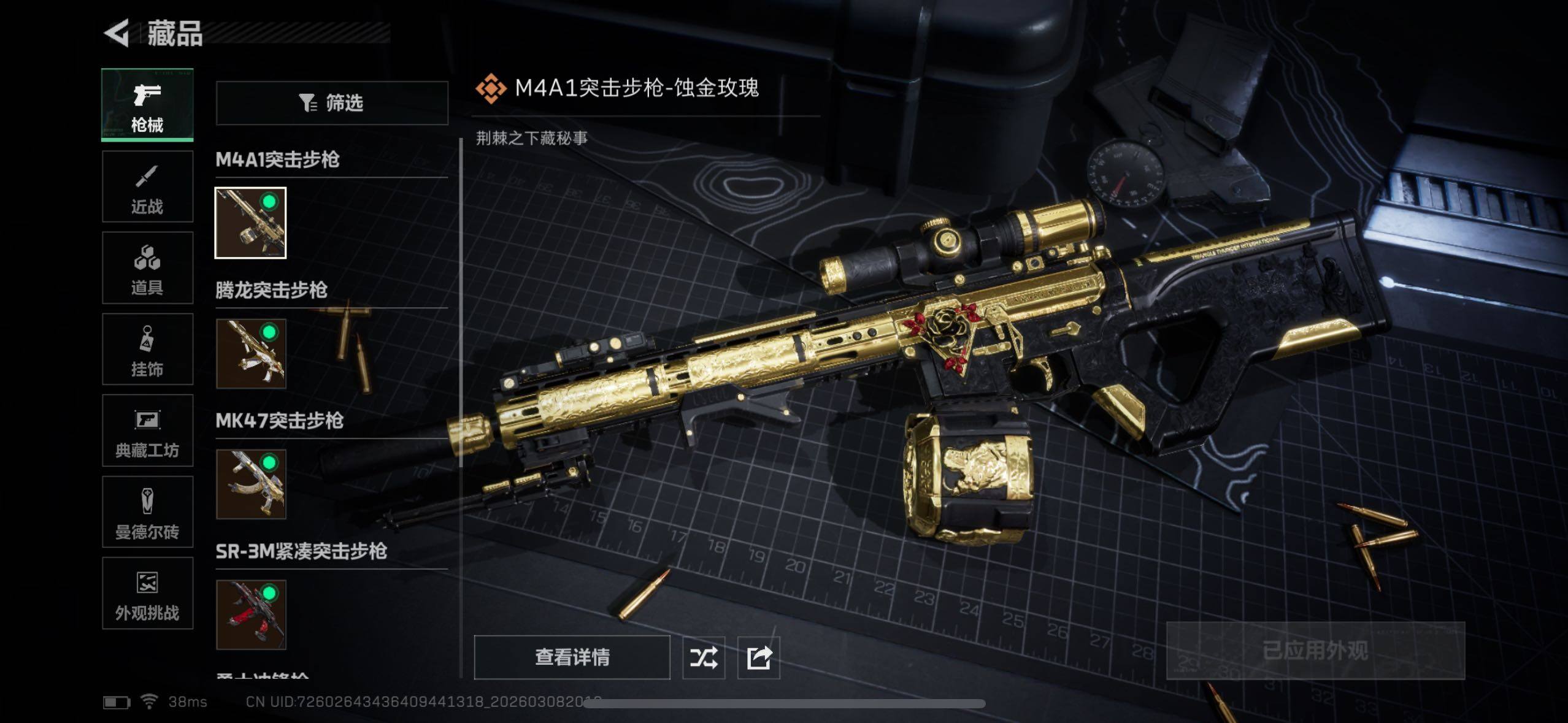 【传说外观】:M4A1突击步枪-蚀金玫瑰,腾龙突击步枪-万金泪冠,MK47突击步枪-暗星,SR-3M紧凑突击步枪-暗星,勇士冲锋枪-万金泪冠,M14射手步枪-蛮荒,AWM狙击步枪-万金泪冠