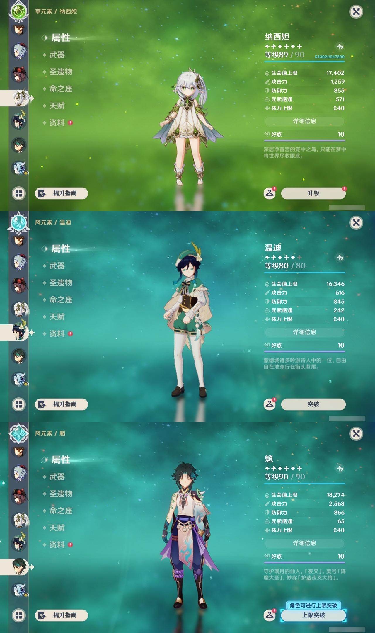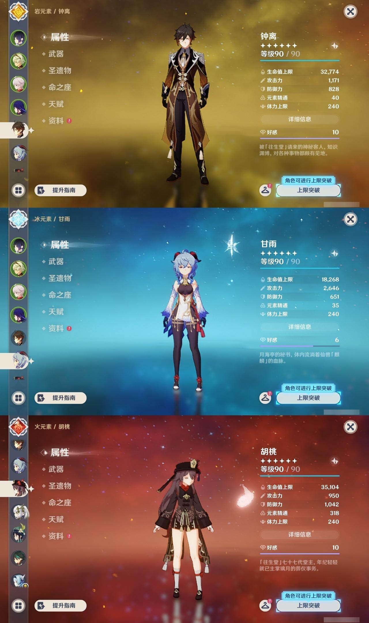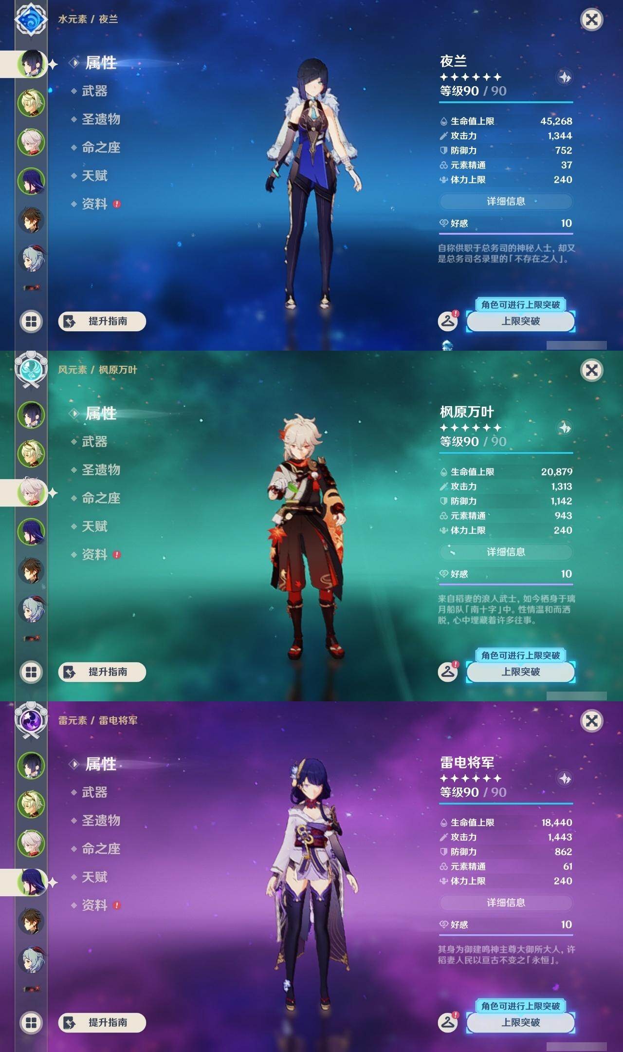 枫原万叶,雷电将军,钟离,甘雨,胡桃,温迪,魈,优菈,刻晴,莫娜,珊瑚宫心海,琴,七七,迪卢克