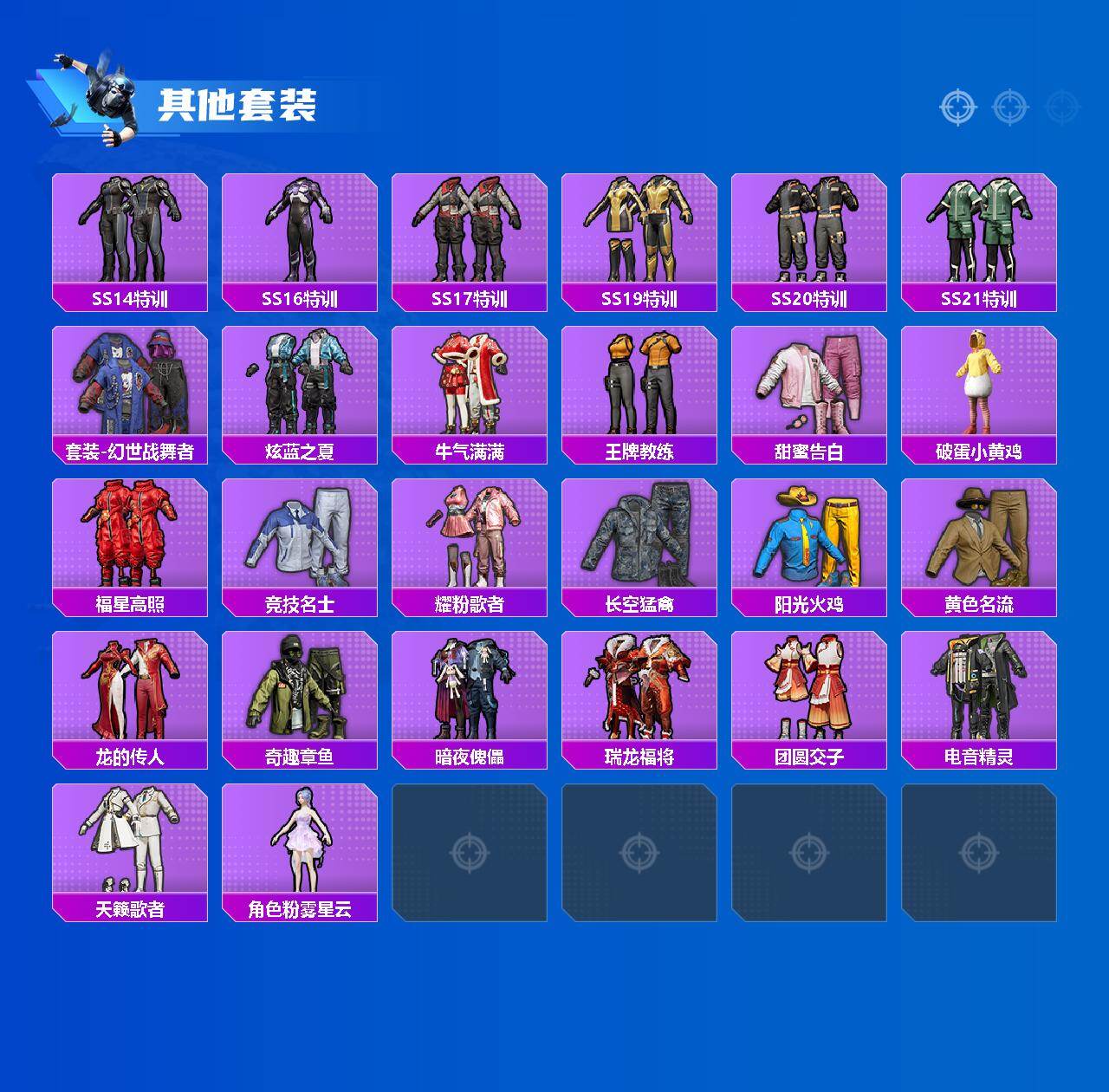 - [17226113]安卓 手Q-1粉装-5特效枪-0载具-0粉色飞行器-33867热力值-2王牌印记-108套装-134枪皮 【热门品类】:套装-龟仙人 【粉色套装】:套装-创世·救赎 【粉色枪皮等级】:M416-电玩时刻(五级),GROZA-镜光银凌(五级),UMP45-量子极限(五级),Kar98K-巳巳如意(五级),PKM-江南烟雨(五级) 【粉色枪皮】:M416-电玩时刻,GROZA-镜光银凌,UMP45-量子极限,Kar98K-巳巳如意,PKM-江南烟雨 【粉色降落伞】:垂柳戏鸭降落伞,江南烟雨降落伞,炫彩糖果降落伞 【稀有套装】:套装-龟仙人,套装-巳巳如意,套装-雏菊兔兔,套装-萝兰蝴蝶,角色-狂花道·娜可露露,套装-糖糖葫芦,套装-青团波波,角色-俏兔智灵,套装-燕燕于飞,套装-鱼渊荷华,套装-樱梦幻音 【稀有枪皮】:AKM-彩虹符号,AKM-江南烟雨,AKM-龙的传人,M16A4-幻世战舞者,M16A4-蓝色火焰,SCAR-L-夜灯,SCAR-L-玉兔迎春,M416-蓝色火焰,GROZA-彩虹符号,GROZA-影袭,AUG-天降萌叽,AUG-甜蜜菠萝,AUG-耀粉歌者,QBZ-彩虹符号,M762-彩虹符号,AC-VAL-天降萌叽,蜜獾-天降萌叽,蜜獾-娇憨猪猪,UZI-天降萌叽,UZI-娇憨猪猪,UMP45-夜灯,UMP45-生命誓言,UMP45-蓝色火焰,Vector-焰鹰斗篷,汤姆逊-天降萌叽,汤姆逊-耀粉歌者,AKS-74U-鬼刀,P90-金蛇镇世,P90-巳巳如意,Kar98K-彩虹符号,M24-炫彩节奏,AWM-焰鹰斗篷,SKS-炫彩节奏,VSS-彩虹符号,Mini14-梦幻火箭,Mini14-炫彩节奏,Mini14-耀粉歌者,Mini14-镭金极速,SLR-娇憨猪猪,AMR-鬼刀,S686-彩虹符号,S686-生命誓言,S686-红色方程式,S686-巳巳如意,S1897-炫彩节奏,S12K-玩趣呆呆,S12K-夜灯,S12K-娇憨猪猪,DBS-焰鹰斗篷,M249-彩虹符号,M249-破晓战魂,DP-28-焰鹰斗篷,TMP-9-江南烟雨,战术弩-江南烟雨,大砍刀-黑金刀,大砍刀-鬼刀,破片手榴弹-巳巳如意 【其他套装】:套装-SS21特训,套装-SS22特训,套装-SS23特训,套装-SS25特训,套装-SS27特训,套装-SS28特训,套装-SS29特