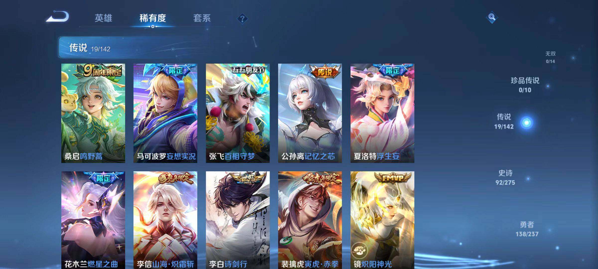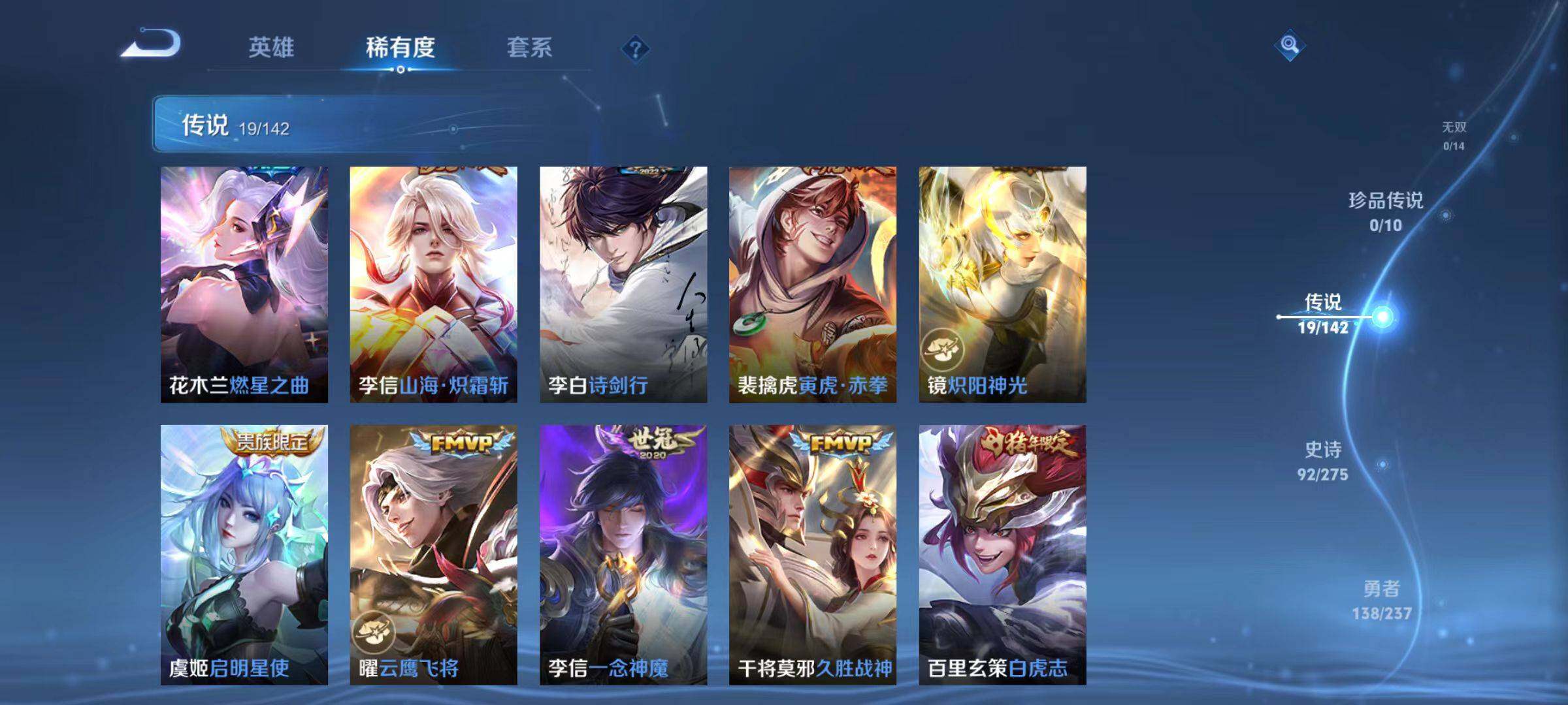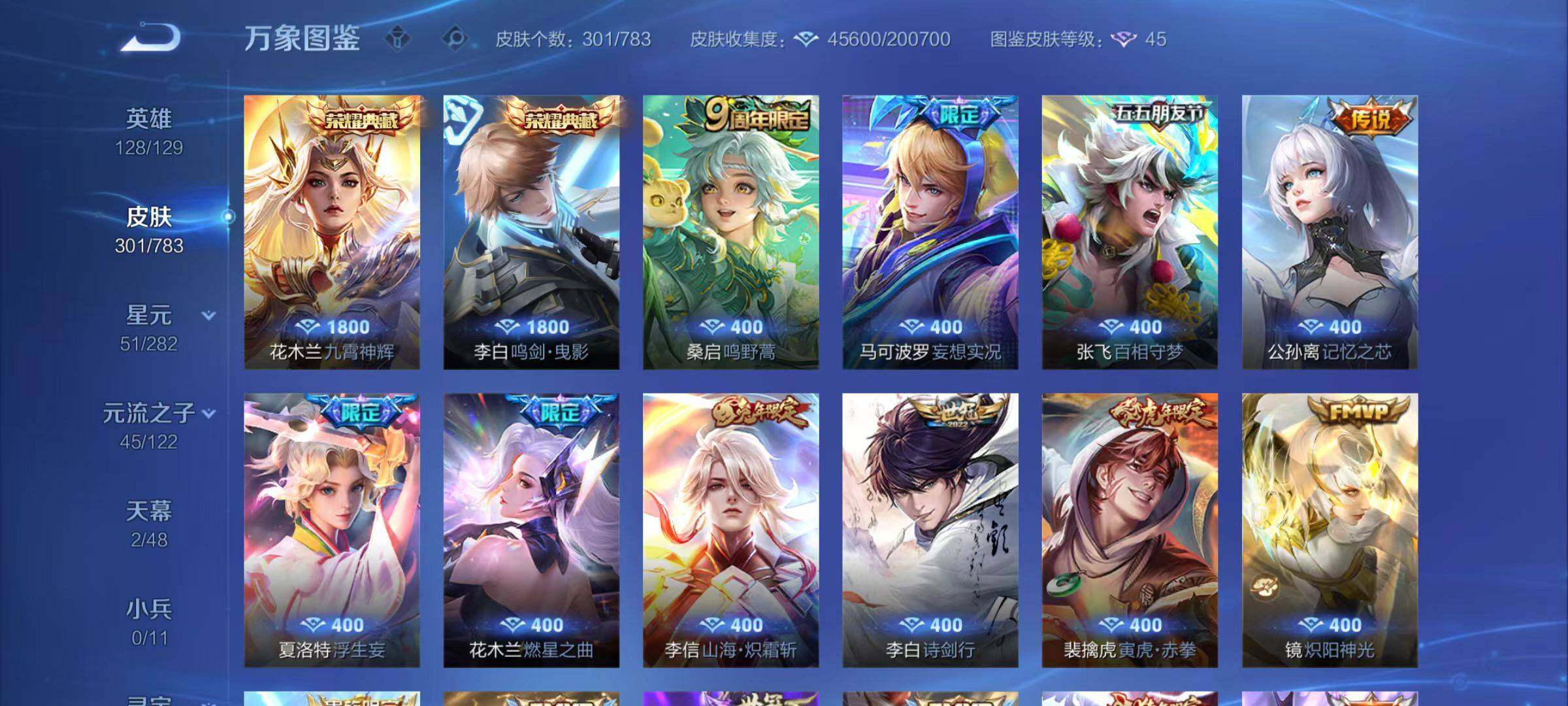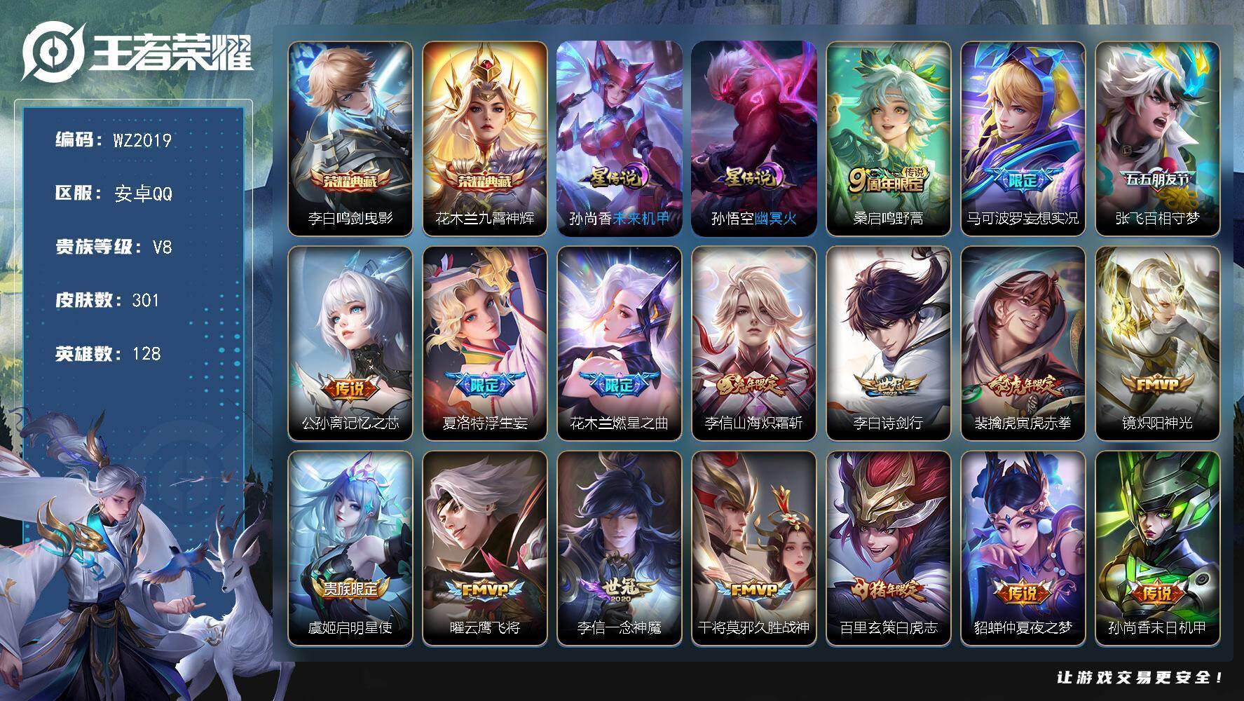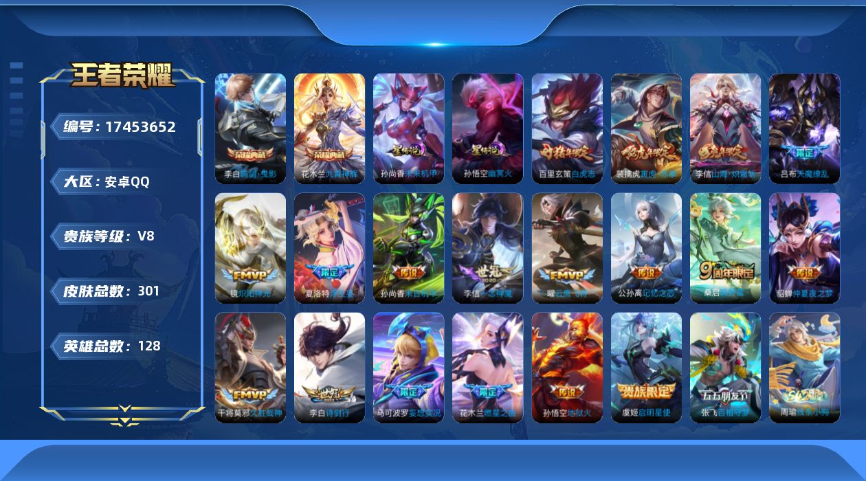 [17453652]安卓Q-V8-至尊星耀V段位-128英雄-301皮肤-2典藏皮肤-19传说-91史诗