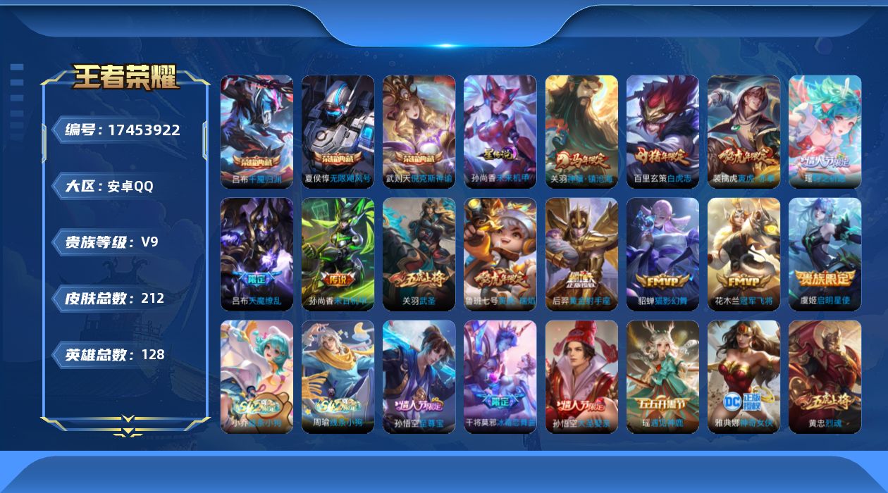 [17453922]安卓Q-V9-212皮肤-3典藏皮肤-1典藏英雄-12传说-55史诗