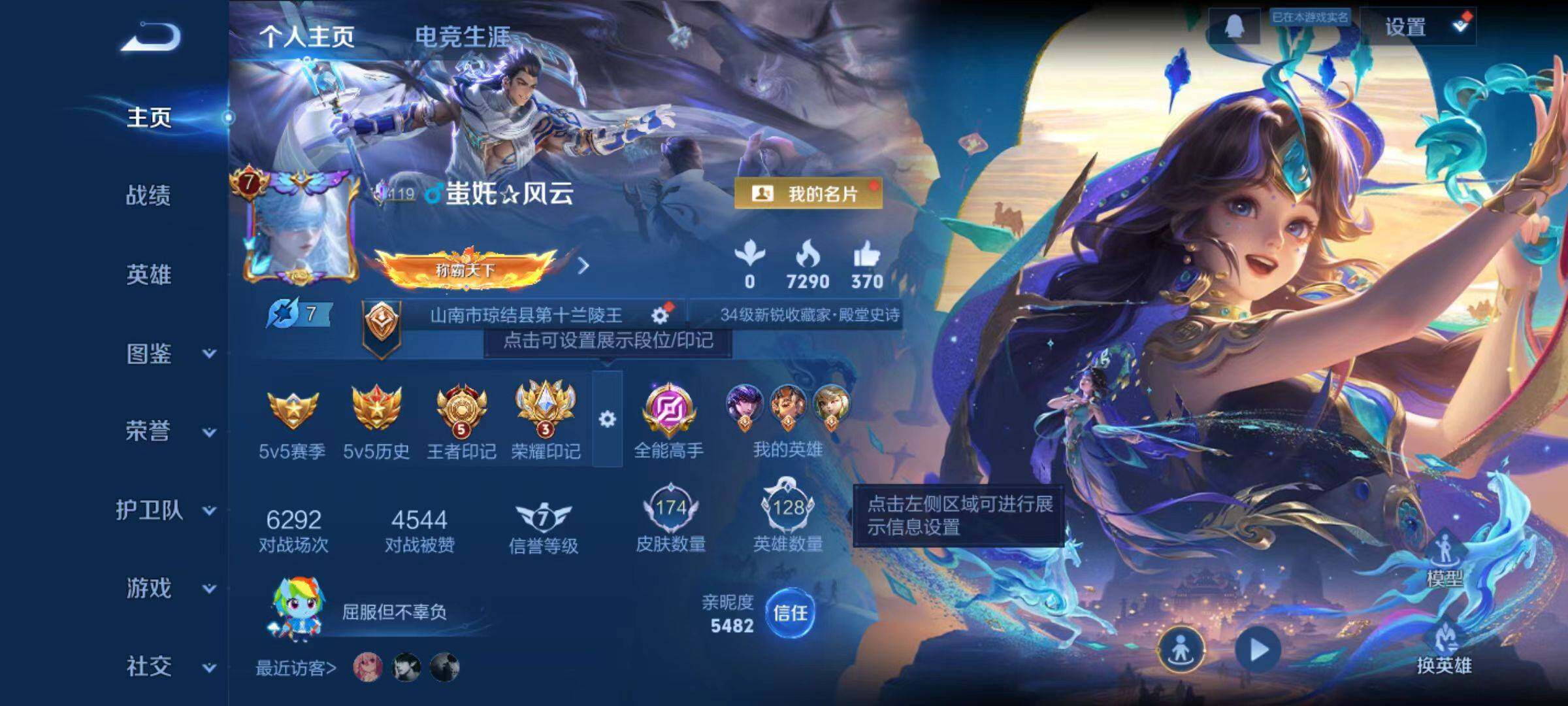 - PX_2100027-极品低场次开局号-安卓q-有二次-贵8-121英雄-170皮肤-典藏-17传说-53限定-15按键-贵族积分5.4w-营地ID:1759077833【热皮:雪白狼、乘龙问璇玑、乘龙淬吴钩、乘龙铭钟鼎、逐花归海、铠琥珀纪元、马超琥珀纪元、幻光神枪、愿照九州拓、鸣野蒿、启明星使、寅虎御盾、山海玄木吟、傲雪梅枪、朔望之晖、电玩雷克斯、电玩小子、炽阳神光、一念神魔】