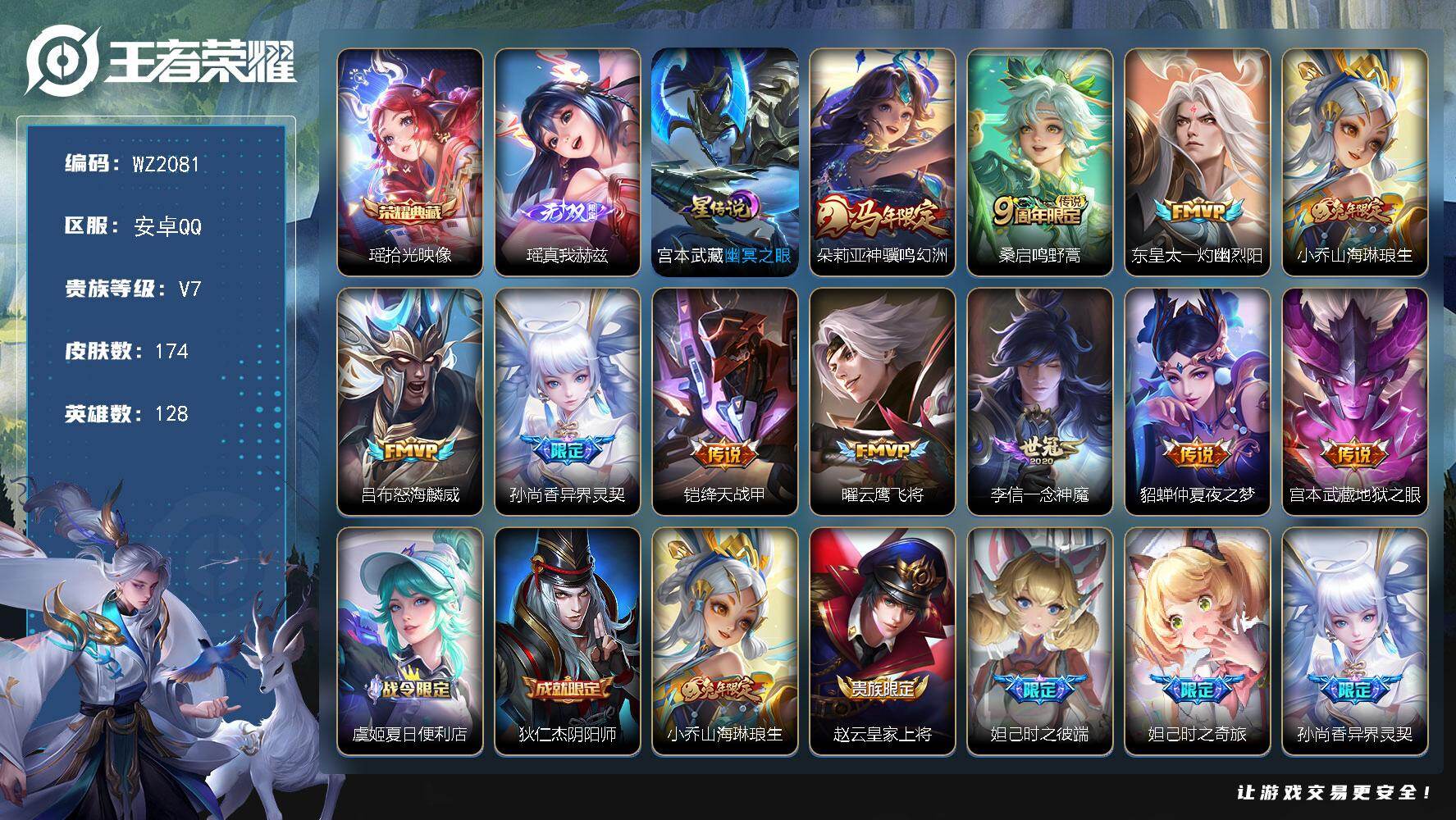 [17453951]安卓Q-174皮肤-1典藏皮肤-1无双-11传说-52史诗