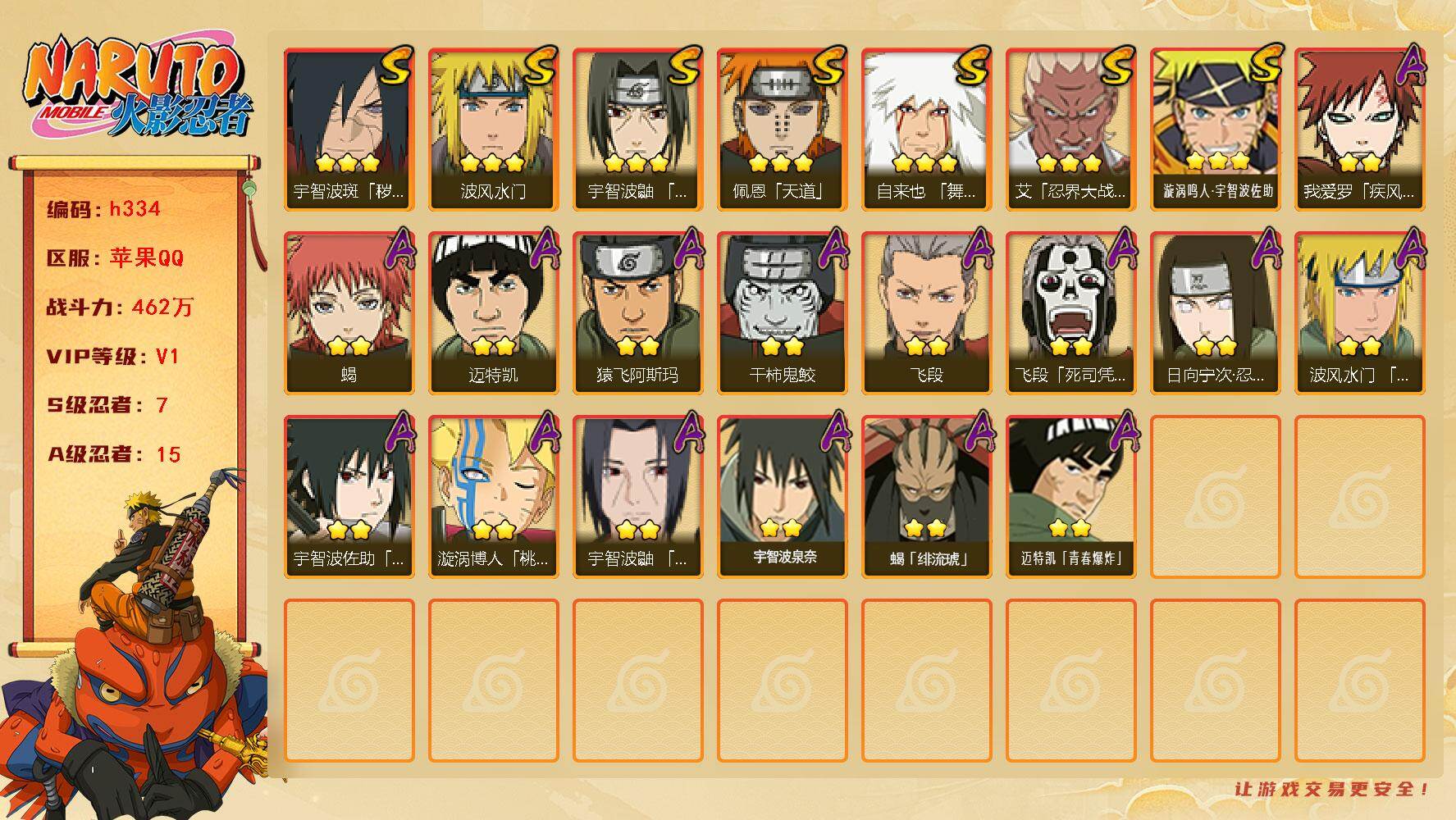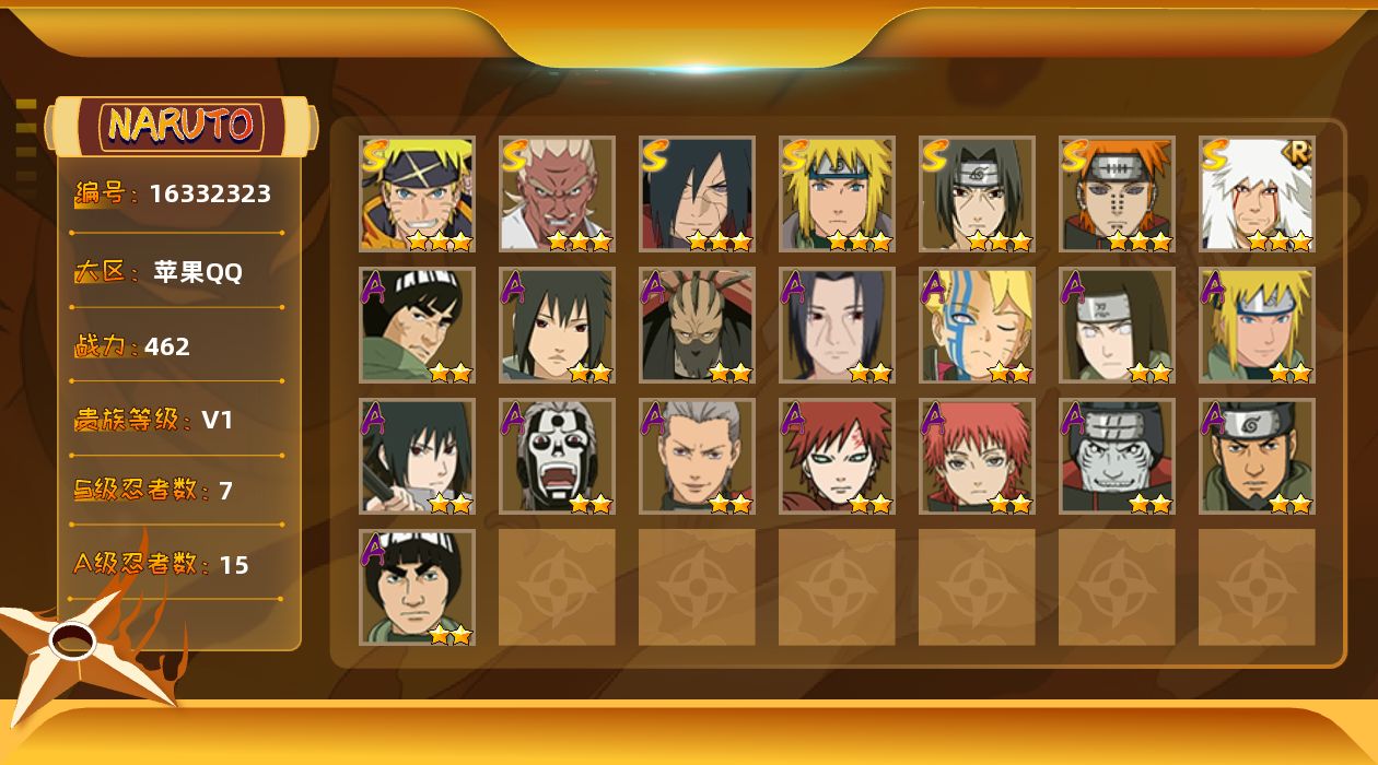 - 火影忍者手游/QQ/苹果QQ1-100区/1区李洛克