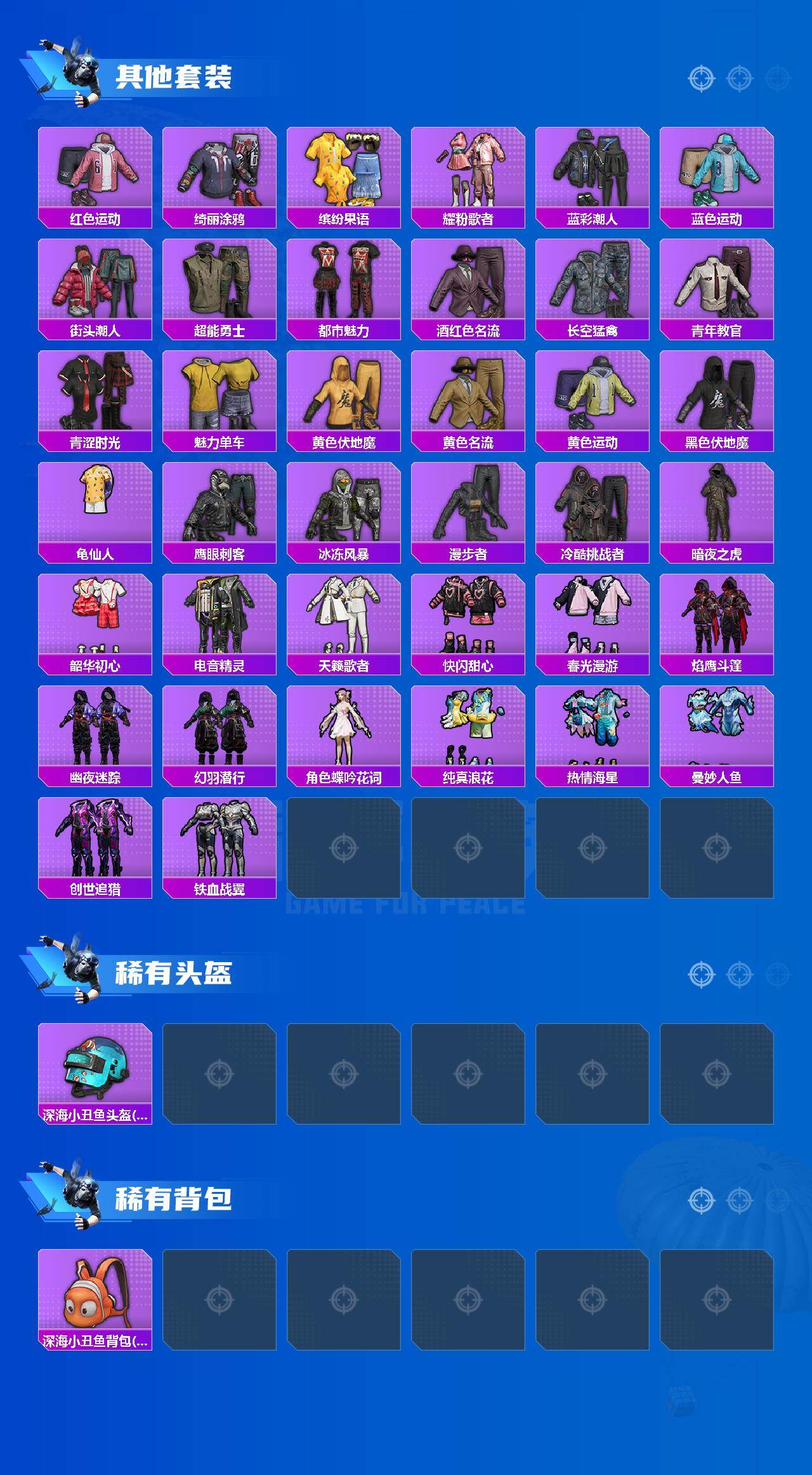 套装-都市猎人,套装-冥河战士,套装-派对舞王,套装-胖达团团,套装-桃粉嫣然,套装-鹰眼刺客