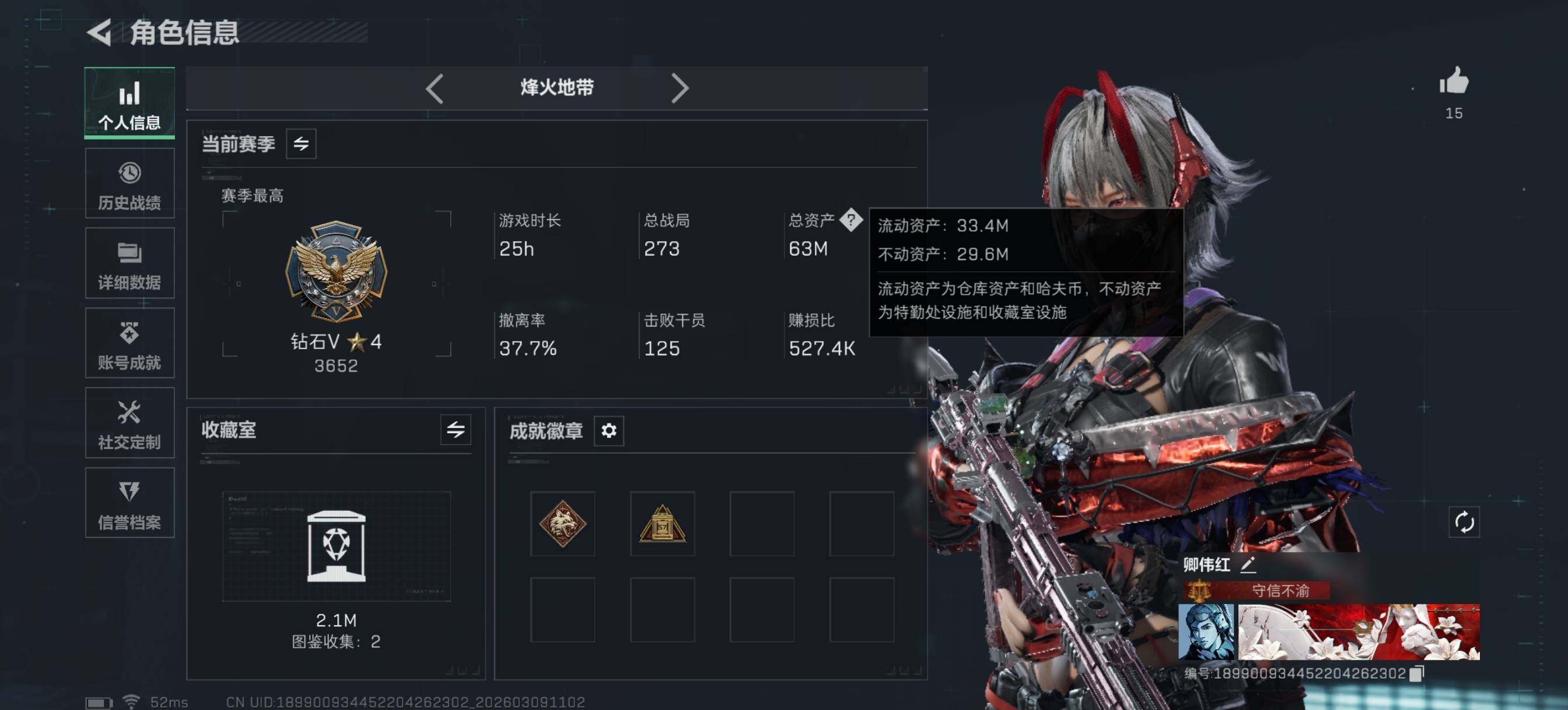 - [16105716]【特价出售/店主推荐】80m总资产-6033k哈伏币-60烽火等级-三角洲巅峰-20战场等级-列兵 【干员外观】:威龙-壮志凌云,无名-夜鹰,深蓝-不破誓约,红狼-电锯惊魂,露娜-金牌射手 【近战皮肤】:近战-信条,近战-黑鹰 【传说外观】:M4A1突击步枪-阿米娅,M7战斗步枪-神秘艺术,SG552突击步枪-运动员,AK-12突击步枪-夜鹰,SCAR-H战斗步枪-铁艺苍穹,SCAR-H战斗步枪-启航,G3战斗步枪-骑士,CAR-15突击步枪-阿米娅,腾龙突击步枪-捞点薯条,KC17突击步枪-电锯惊魂,P90冲锋枪-神秘艺术,SMG-45冲锋枪-骑士,勇士冲锋枪-能天使-午夜邮差,M250通用机枪-骑士之心,SR-25射手步枪-水墨云图,AWM狙击步枪-捞点薯条,93R-捞点薯条,复合弓-黑·天际线 【史诗外观】:M4A1突击步枪-特勤执行,AKM突击步枪-林中猎手,QBZ95-1突击步枪-曙光,QBZ95-1突击步枪-ACE,ASh-12战斗步枪-守夜人,ASh-12战斗步枪-无极限,M16A4突击步枪-竞赛选手,AUG突击步枪-蝮蛇,AUG突击步枪-特勤执行,M7战斗步枪-百步穿杨,SG552突击步枪-尖端治疗,SG552突击步枪-深海恐惧,SCAR-H战斗步枪-囚徒,G3战斗步枪-战场英杰,G3战斗步枪-流沙送葬,PTR-32突击步枪-ACE,AS Val突击步枪-刀锋,AS Val突击步枪-尖端治疗,AS Val突击步枪-百步穿杨,腾龙突击步枪-猎鳄行动,K437突击步枪-守护者,MP5冲锋枪-深海恐惧,MP5冲锋枪-战术竞备,MP5冲锋枪-竞技风,Vector冲锋枪-阿萨拉文明,Vector冲锋枪-红色彗星,Vector冲锋枪-猎鳄行动,Vector冲锋枪-百步穿杨,SR-3M紧凑突击步枪-英雄,SR-3M紧凑突击步枪-战术竞备,勇士冲锋枪-深海恐惧,勇士冲锋枪-工业狂潮,MP7冲锋枪-守护者,M1014霰弹枪-林中猎手,S12K霰弹枪-曙光,PKM通用机枪-蝮蛇,PKM通用机枪-守夜人,M250通用机枪-囚徒,Mini-14射手步枪-守护者,SVD狙击步枪-阿萨拉工艺,SVD狙击步枪-暗夜猎手,M14射手步枪-工业狂潮,SKS射手步枪-ACE,SR-25射手步枪-尖端治疗,SV-98狙击步枪-林中猎手,SV-98狙击步枪-囚徒,SV-98狙击步枪-猎鳄