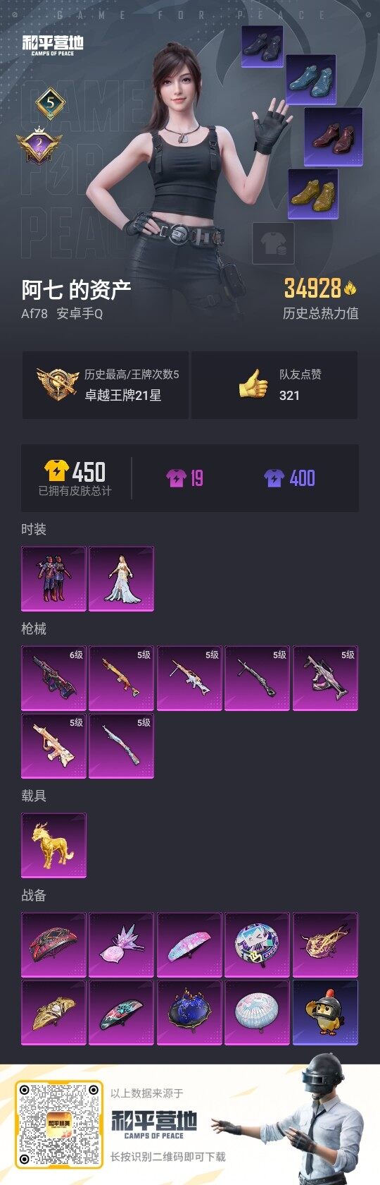 安卓 手Q-2粉装-7特效枪-1载具-2粉色飞行器-34928热力值-5王牌印记-96套装-126枪皮
