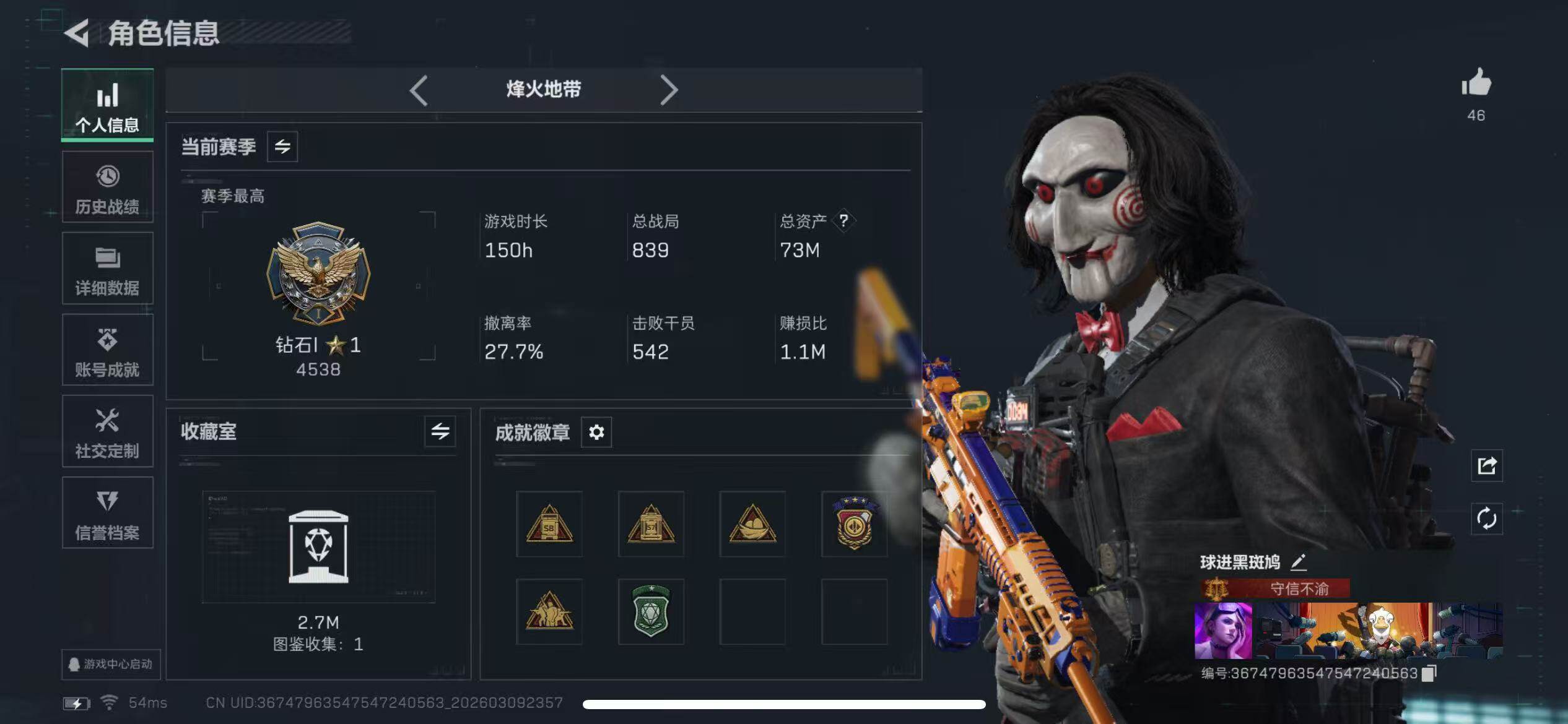 [17464543]【特价出售/店主推荐】73m总资产-229k哈伏币-60烽火等级-钻石-14战场等级-列兵