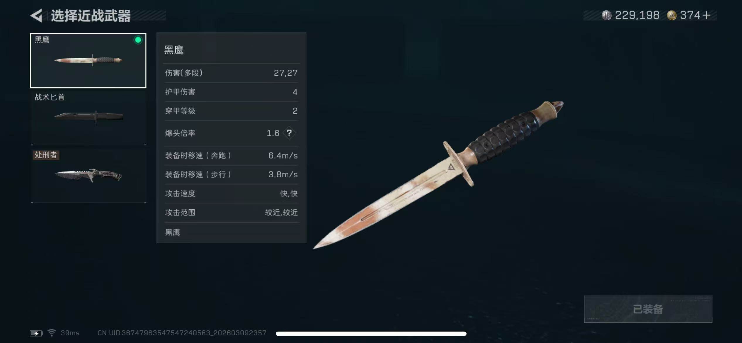 【近战皮肤】:近战-处刑者2级,近战-黑鹰