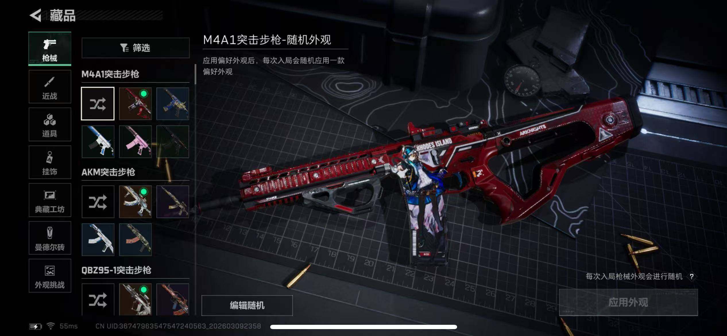 【传说外观】:M4A1突击步枪-阿米娅,AKM突击步枪-锦绣,QBZ95-1突击步枪-凌霄戍卫,ASh-12战斗步枪-鹅鸭杀,AUG突击步枪-悠然茶歇,SG552突击步枪-运动员,AK-12突击步枪-特斯拉线圈,SCAR-H战斗步枪-启航,K437突击步枪-锦绣,KC17突击步枪-电锯惊魂,MK47突击步枪-悠然茶歇,UZI冲锋枪-特斯拉线圈,UZI冲锋枪-悠然茶歇,SMG-45冲锋枪-锦绣,SR-3M紧凑突击步枪-特斯拉线圈,勇士冲锋枪-能天使-午夜邮差,QCQ171冲锋枪-鹅鸭杀,M250通用机枪-骑士之心,QJB201轻机枪-鹅鸭杀,SKS射手步枪-骑士