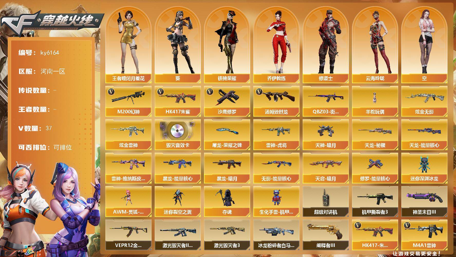 [17401856]【ky6164】河南一区-37V-0王者武器数-2炫金武器数