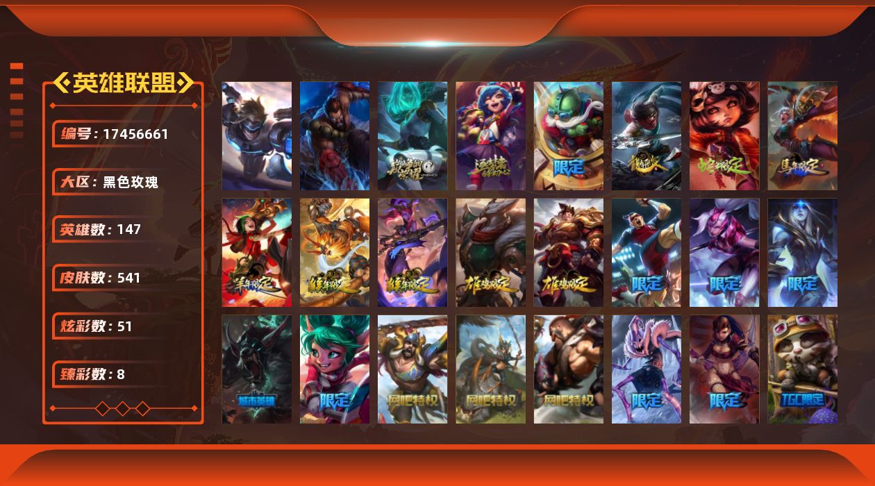 [17456661]【店主推荐捡漏号!可直接换绑】未定级段位-147英雄-541皮肤-51炫彩-2终极-3神话-90限定-43传说-154史诗