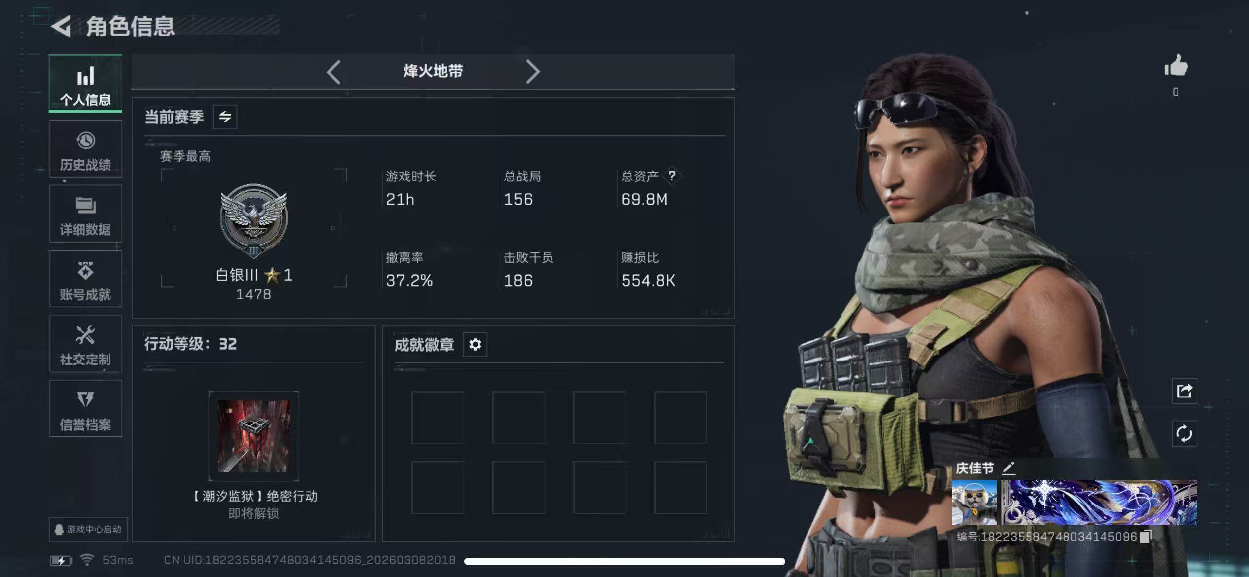 [17470622]【特价出售/店主推荐】69m总资产-42522k哈伏币-32烽火等级-白银-21战场等级-上等兵