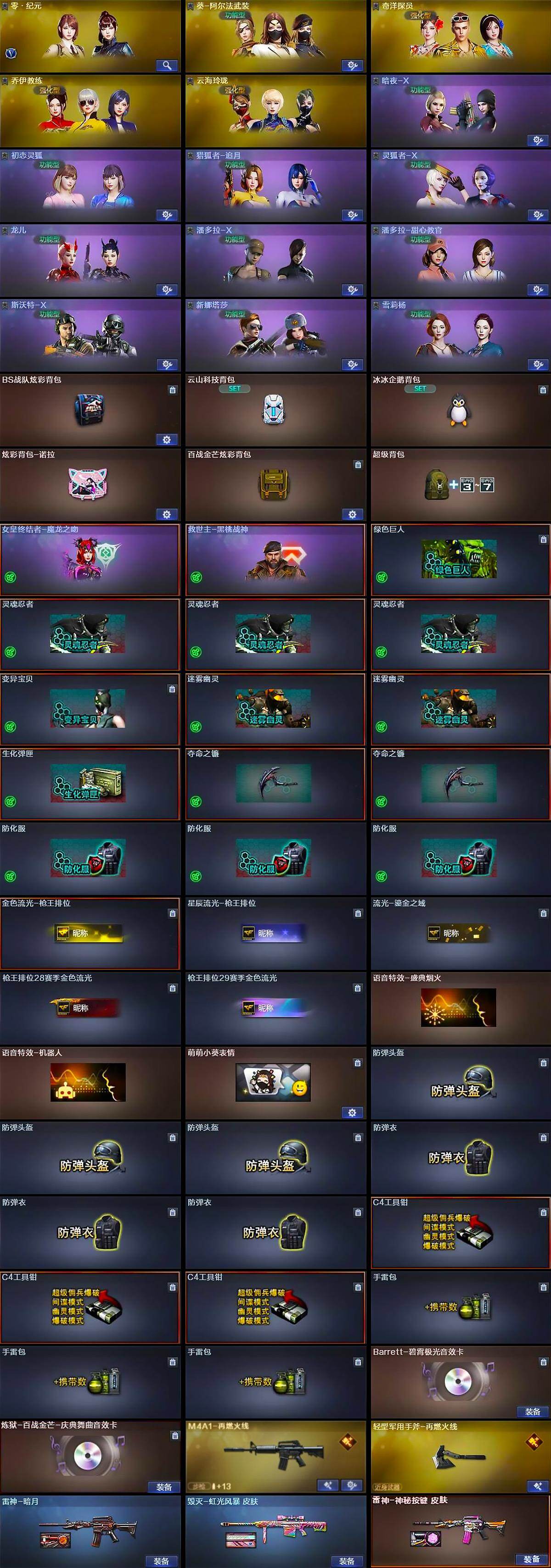 【英雄级武器】:M4A1-千变,AK47-火麒麟,M4A1-雷神,QBZ03-金色蔷薇,机械迷城-穹宇,Barrett-毁灭,M200-幻神,炼狱-百战金芒,COP 357-幻灵,幻灵之锋,麒麟刺-百战金芒,龙啸-烈火龙威,高爆手雷-幻灵,闪光弹-幻灵,闪光弹-云龙,闪光弹-雷霆王者-觉醒版*2,烟雾弹-幻灵,M4A1-赤狱骑士,M4A1-苍鸣雷神,AK47-竞魂无影,Barrett-碧霄极光