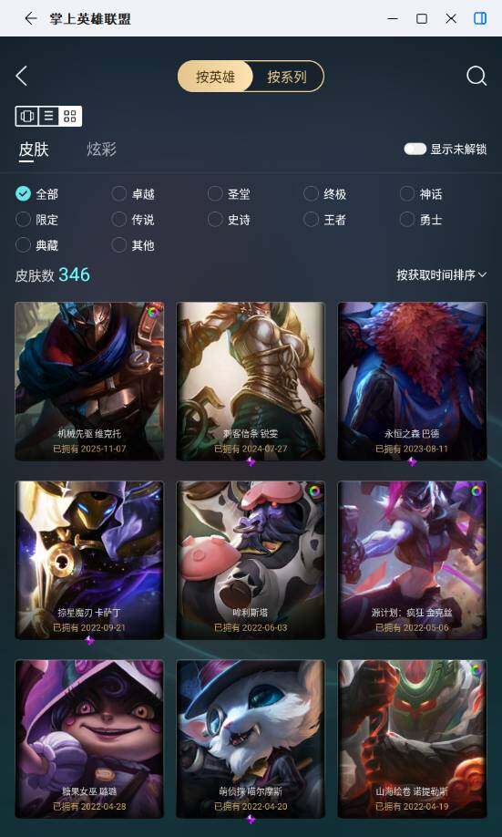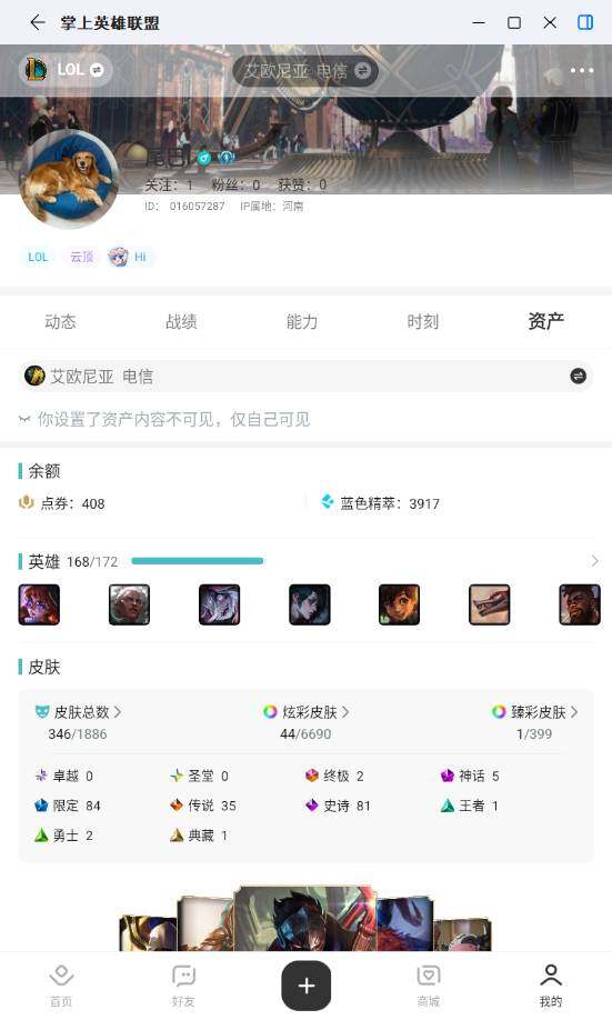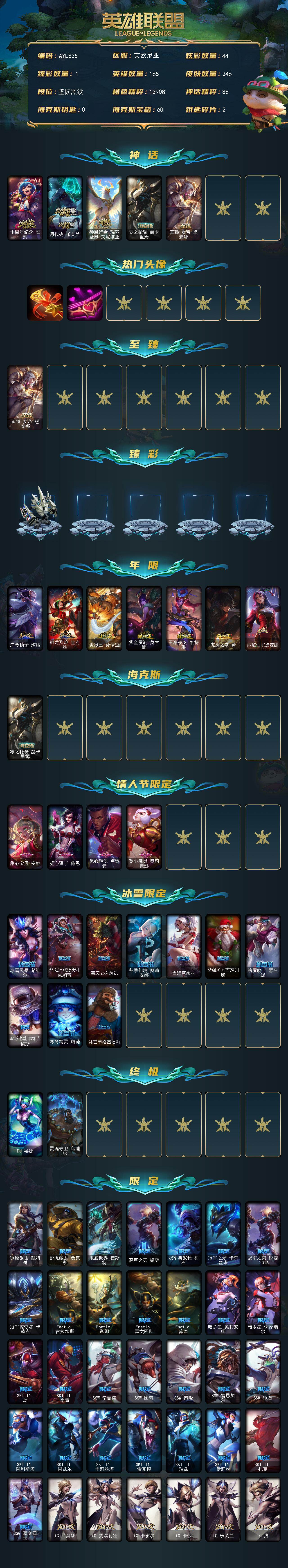 [17482220]未定级段位-168英雄-346皮肤-44炫彩-2终极-5神话-84限定-35传说-81史诗