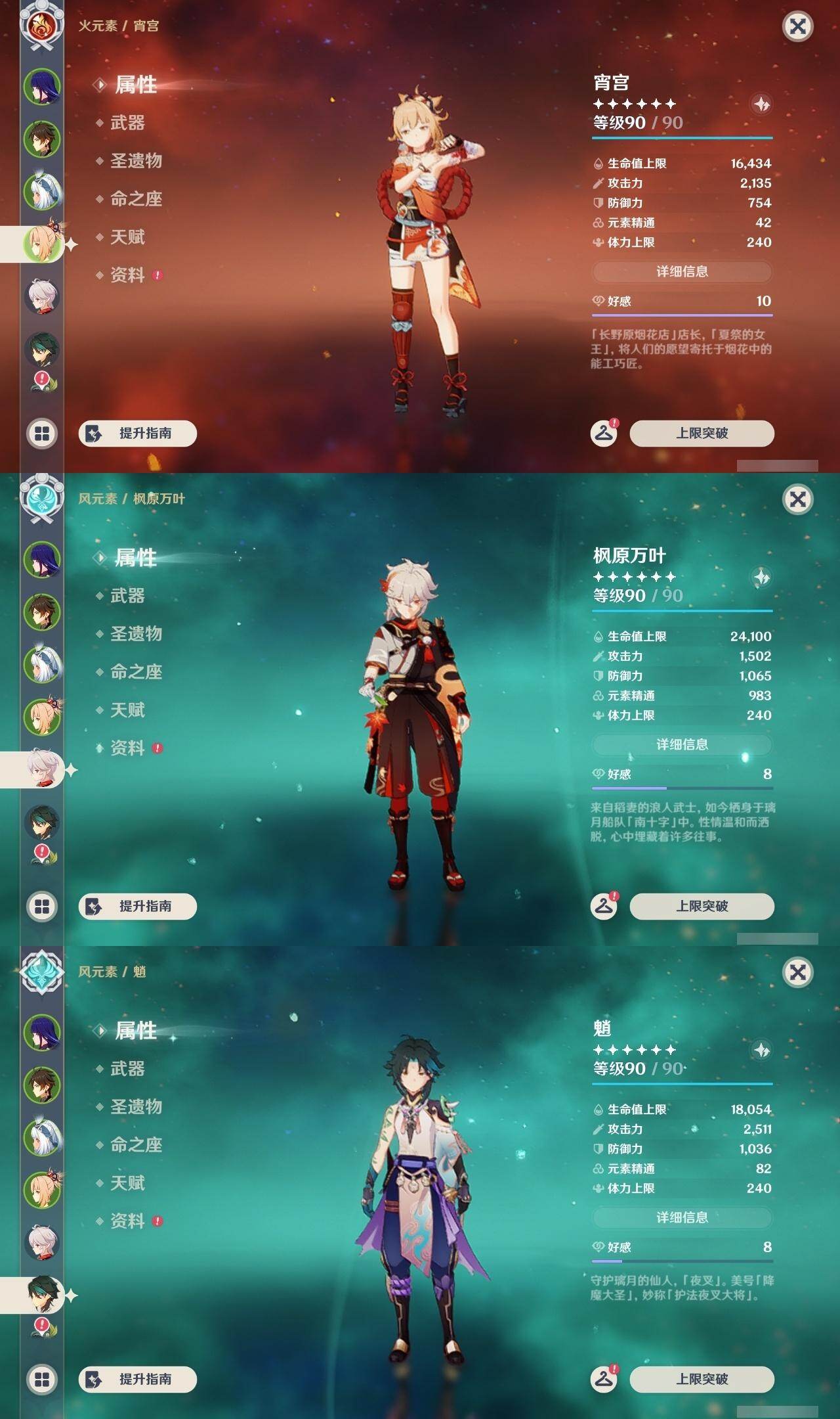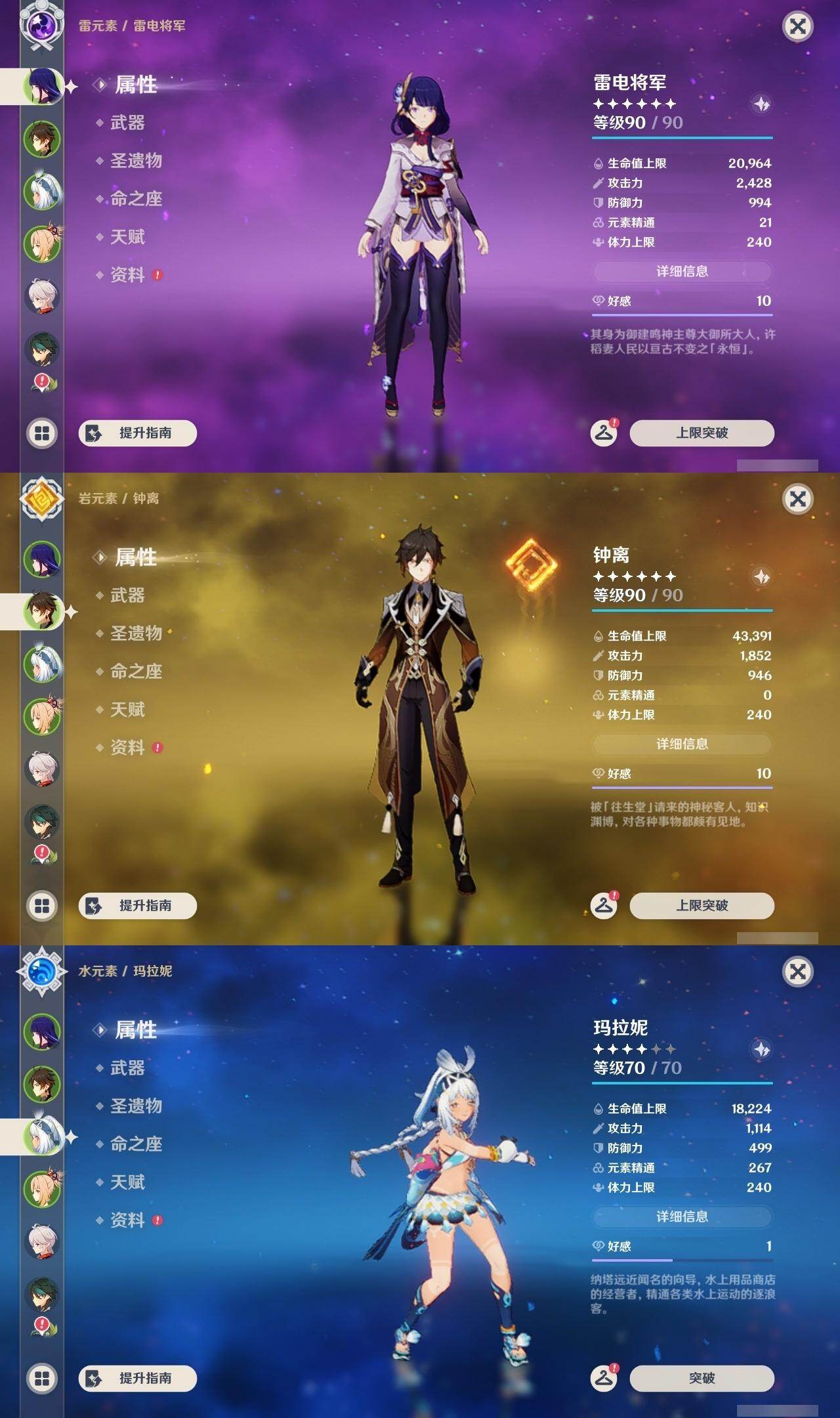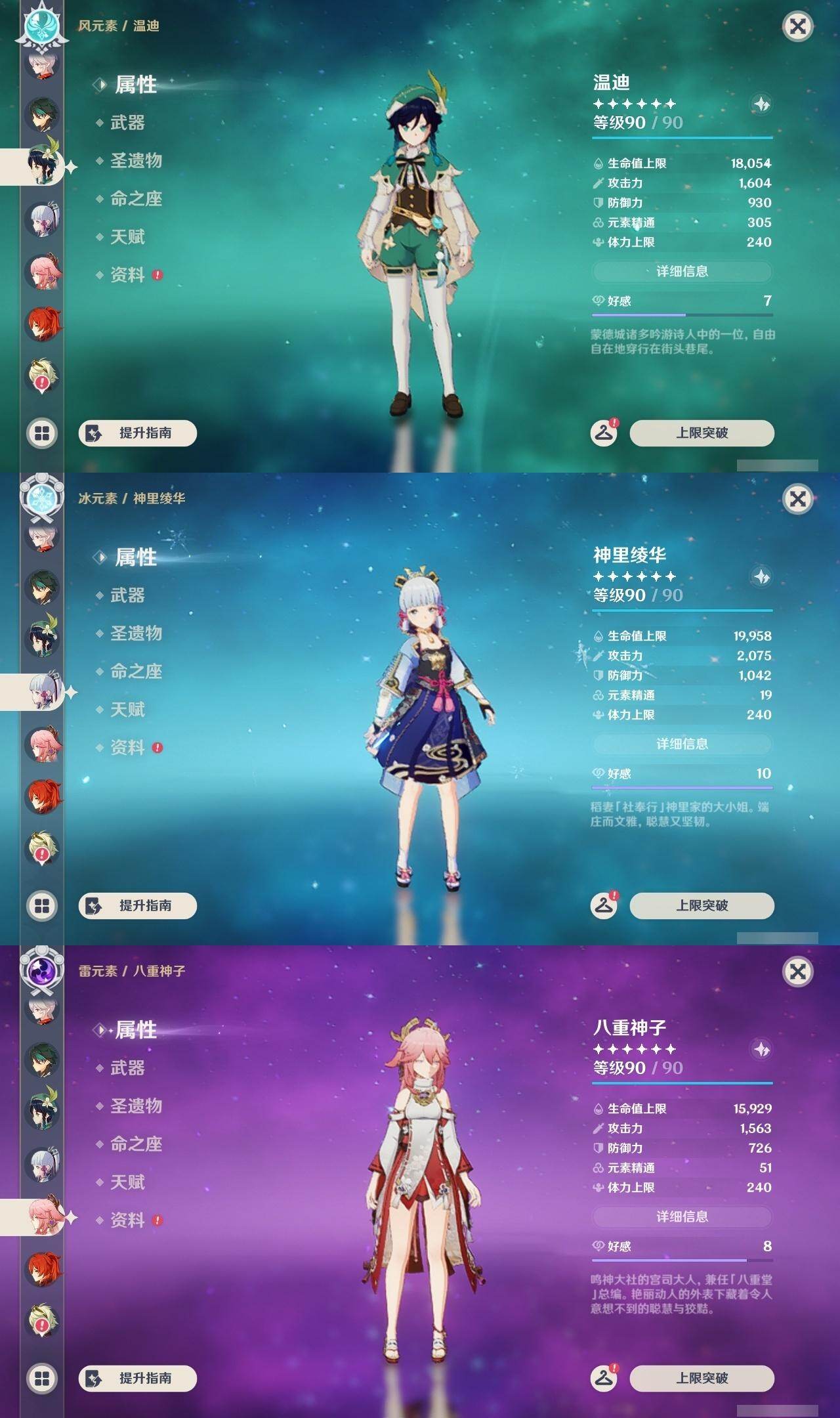 雷电将军,钟离,宵宫,枫原万叶,魈,温迪,神里凌华,八重神子,迪卢克,琴,甘雨,刻晴,莫娜,可莉,七七