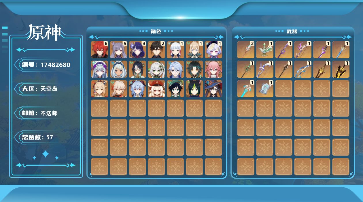 [17482680]57级/57黄/男主/21个五星角色/16个五星武器