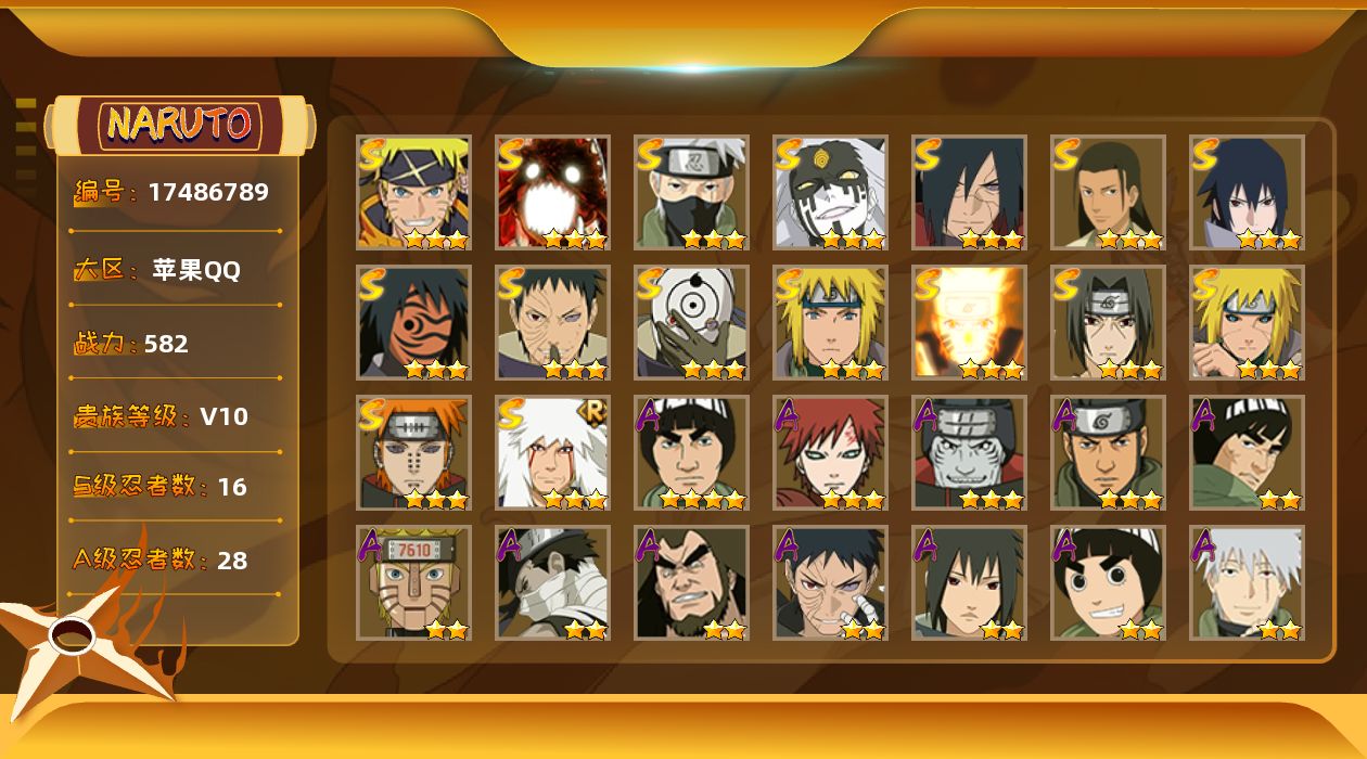 [17486789]16S级忍者数-28A级忍者数 传说自来也81,金水56